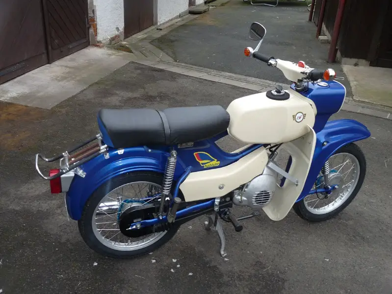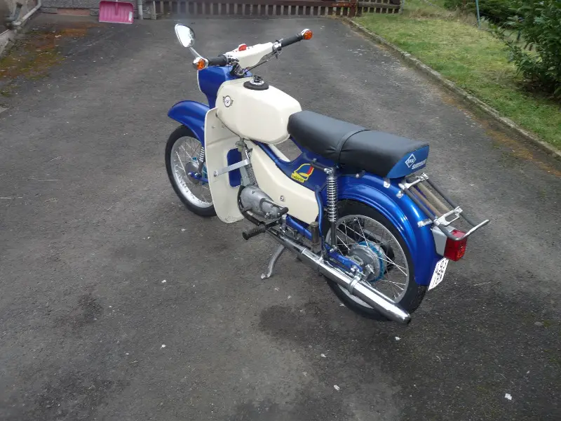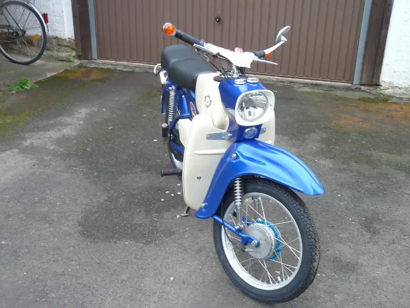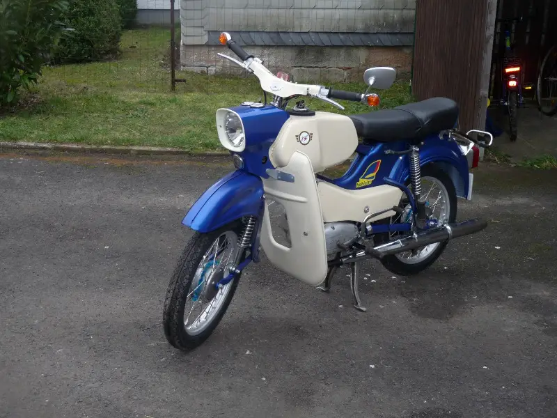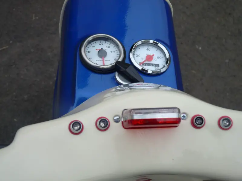 Kontrollampen sind für Blinker rechts/links, Fernlicht und Leerlaufschaltung.