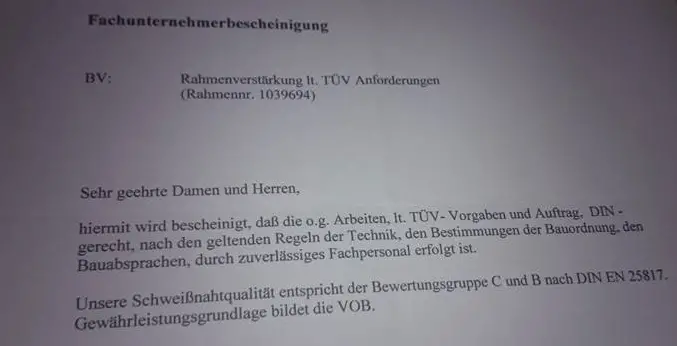 Für alle Schweißarbeiten inkl. Nachweis waren es in etwa 200 Euro.