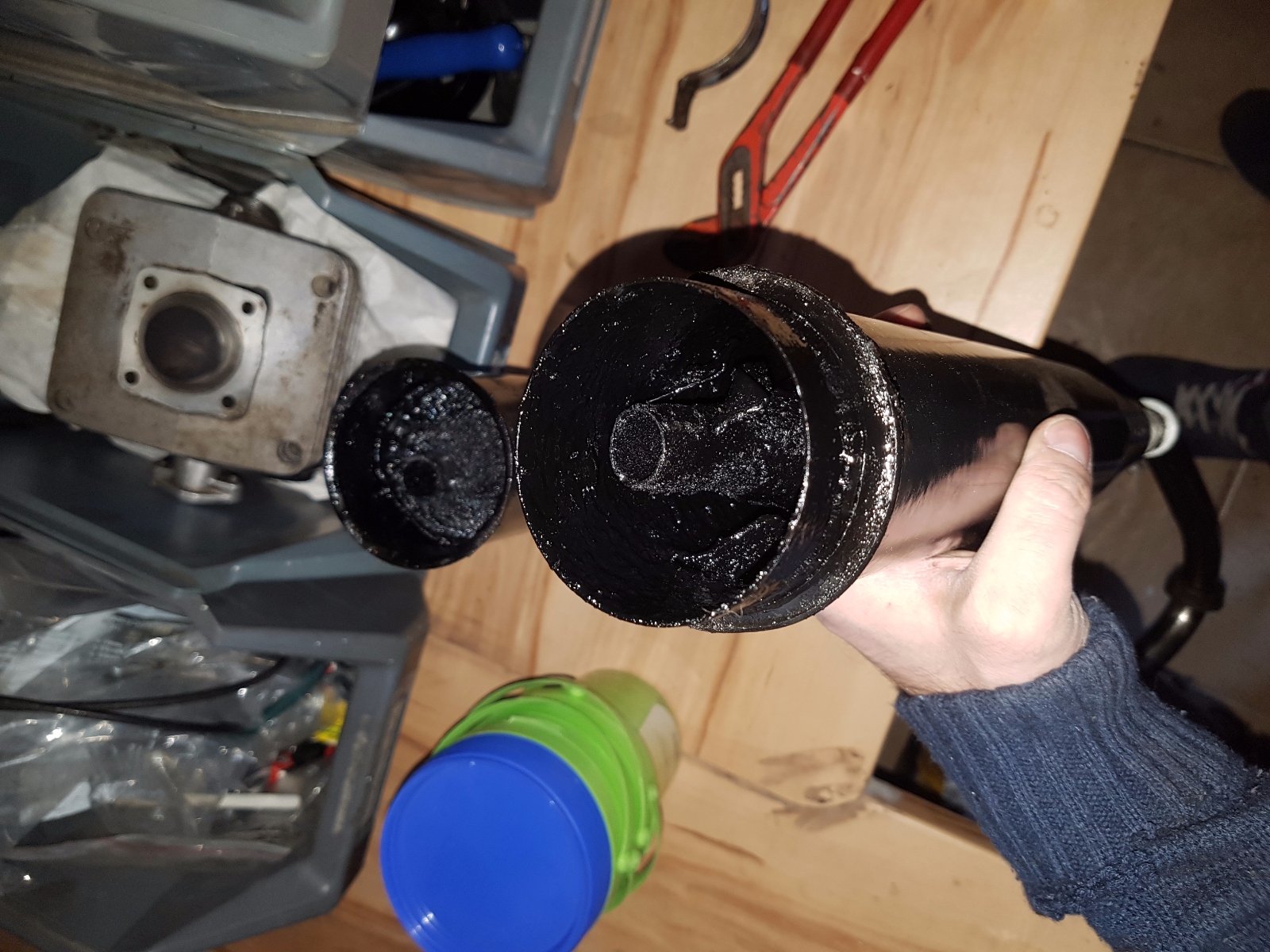 Hatte im Winter den Tank entrostet, der war so verrostet, dass der Schieber im Vergaser stecken geblieben ist.