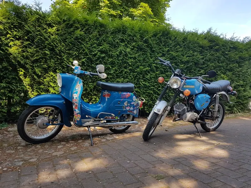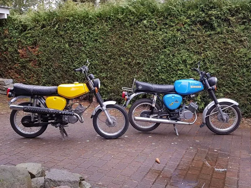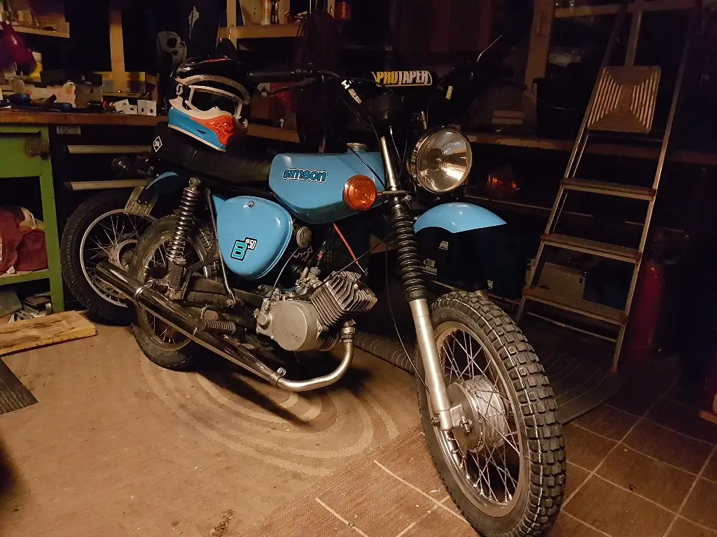Mittlerweile ist die S50 wieder als Original unterwegs. Sogar die alten Blinker hab ich verbaut. Ok, der Lenker stimmt nicht. Und für den Spaß im Gelände hab ich mir ne verbastelte und billige S51 geholt und auf Enduro/Scrambler-Optik umgestrickt.