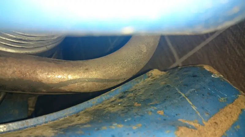 Das Schutzblech vorne war doch eh hin. Verbeult, lackiert und verschrammt.