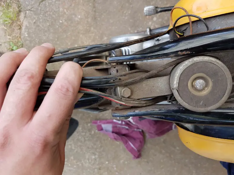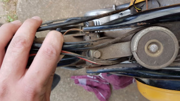 Jetzt kannst du entweder an den Stellen, wo der Lenker mit dem Rahmen in Berührung kommt, den Lack abkratzen oder eine leitende Verbindung zum Schalter mit einem Kabel herstellen.