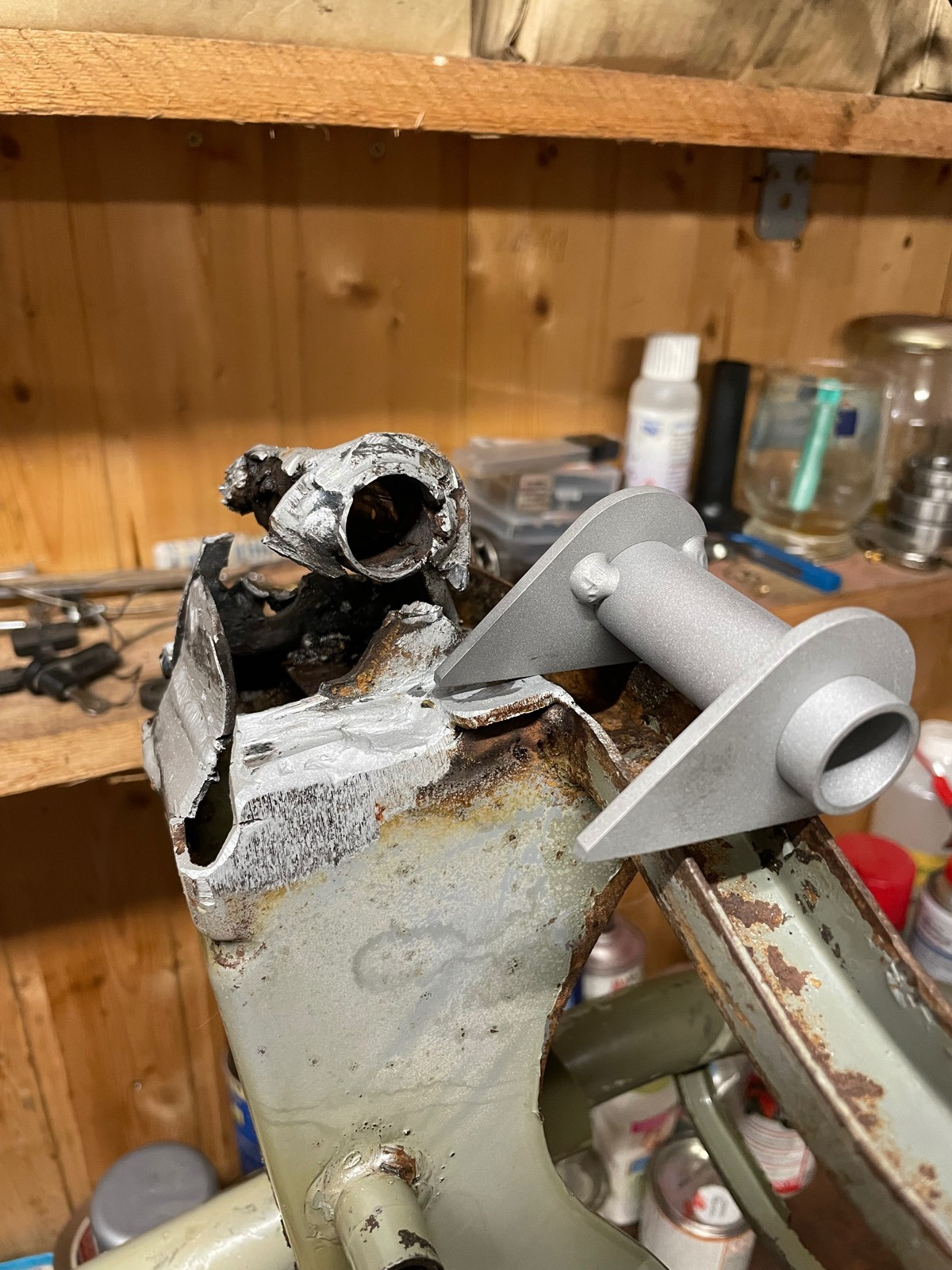 Tja was mach ich denn nu damit? Das waren immerhin 150€. So ein Mist aber auch. Ich könnte es auf jeden Fall erstmal sauber abtrennen und gerade anschweißen lassen, damit sollte die Funktion wieder gegeben sein aber was mach ich mit der Nummer? Weg flexen? Ich will damit auch keine großen Strecken zurück legen, mal zum örtlichen Getränkehändler und zurück.