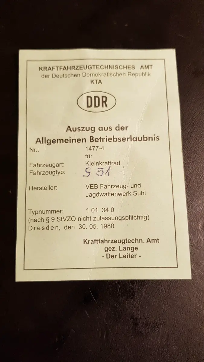 Habe mir heute eine S51 gekauft. Laut Rahmennummer müßte es eine S51 Bj1982 sei. Nummer beginnt mit 512....