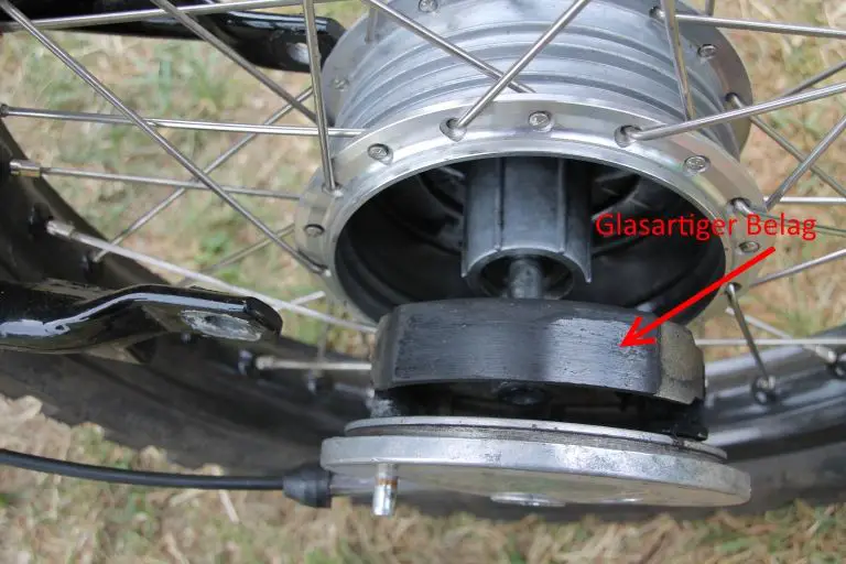 Unsere Vermutung ist, das die modernen Bremsbeläge zu hart sind und/oder die Stahltrommel in der Felge zu weich sodaß keine vernünftige Bremswirkung aufgebaut werden kann.