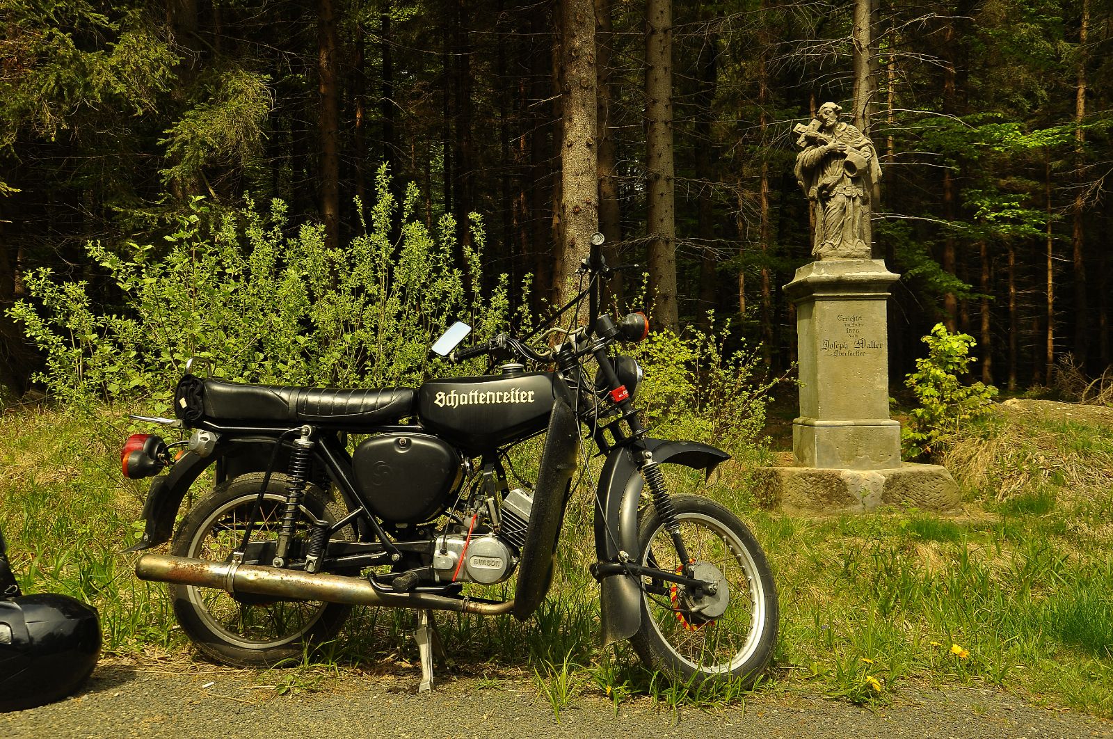 Ich habe ausnahmsweise mal auf der Vorseite ein Faustzeichen vergeben: So wird es bestimmt werden, uns bricht nicht die Zeit das Genick, sondern irgendwelche Huren der GrünInnen und ihre devoten VasallInnnen. Dann wird man glauben, es rettet die Welt, wenn man Simsonzweitakter verbietet... Oder man dreht uns einen Strick daraus, daß das Moped, wenn es umfällt, nicht selbsttätig die Bullerei ruft... (Ich weiß nicht, wie es Euch geht: Mich ergrimmte diese Meldung furchtbar.)