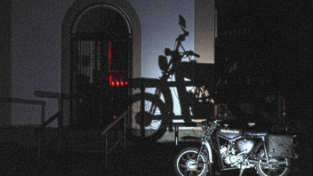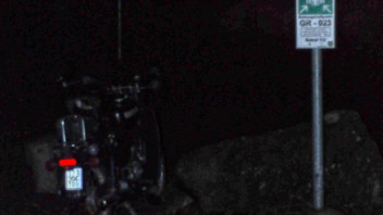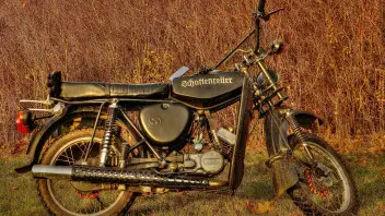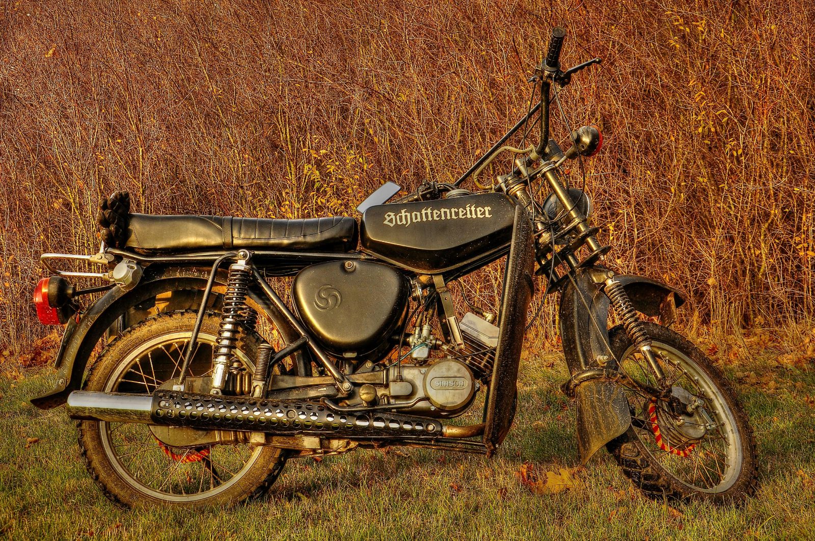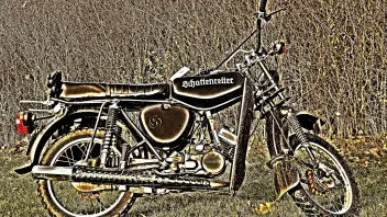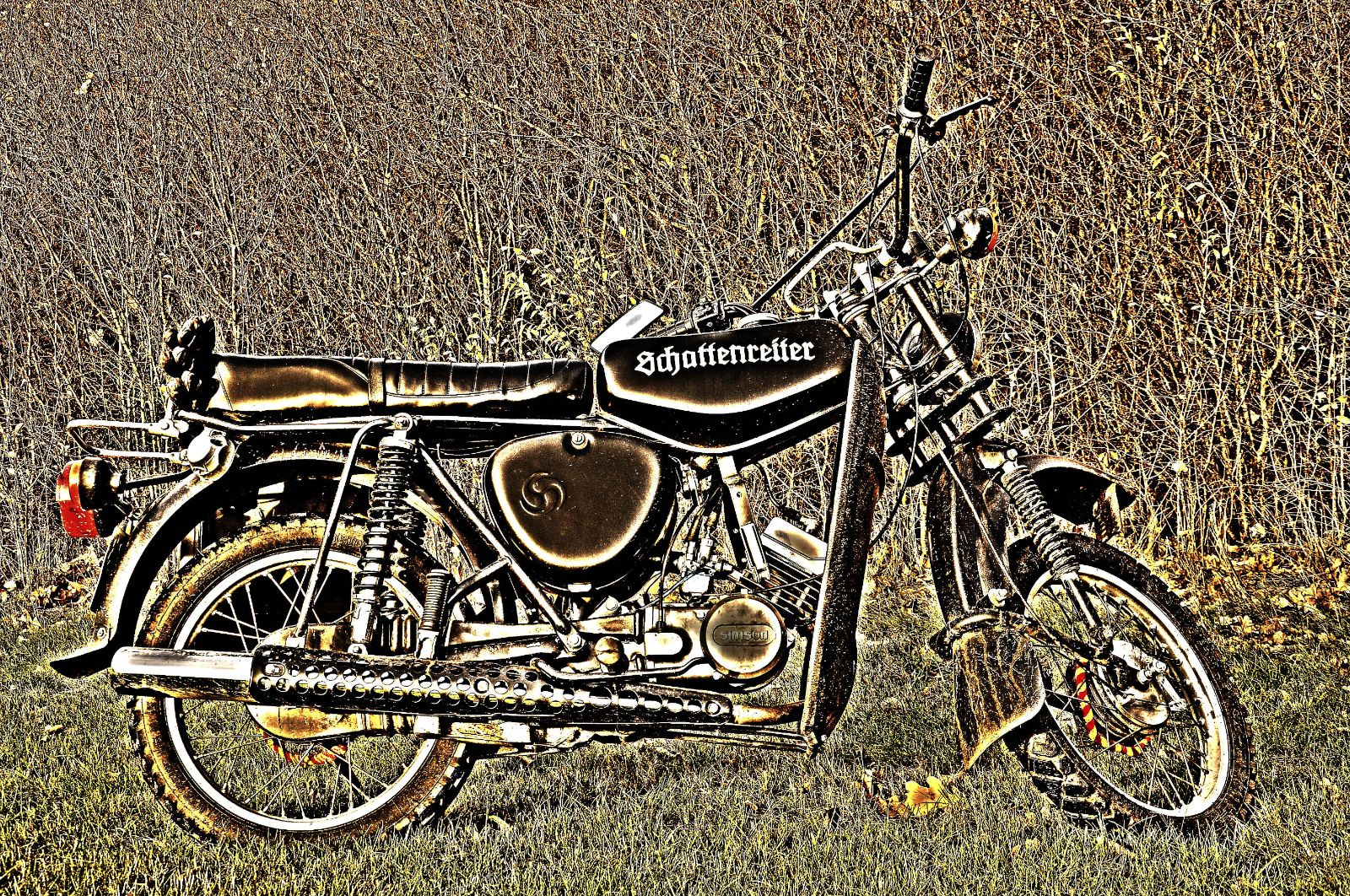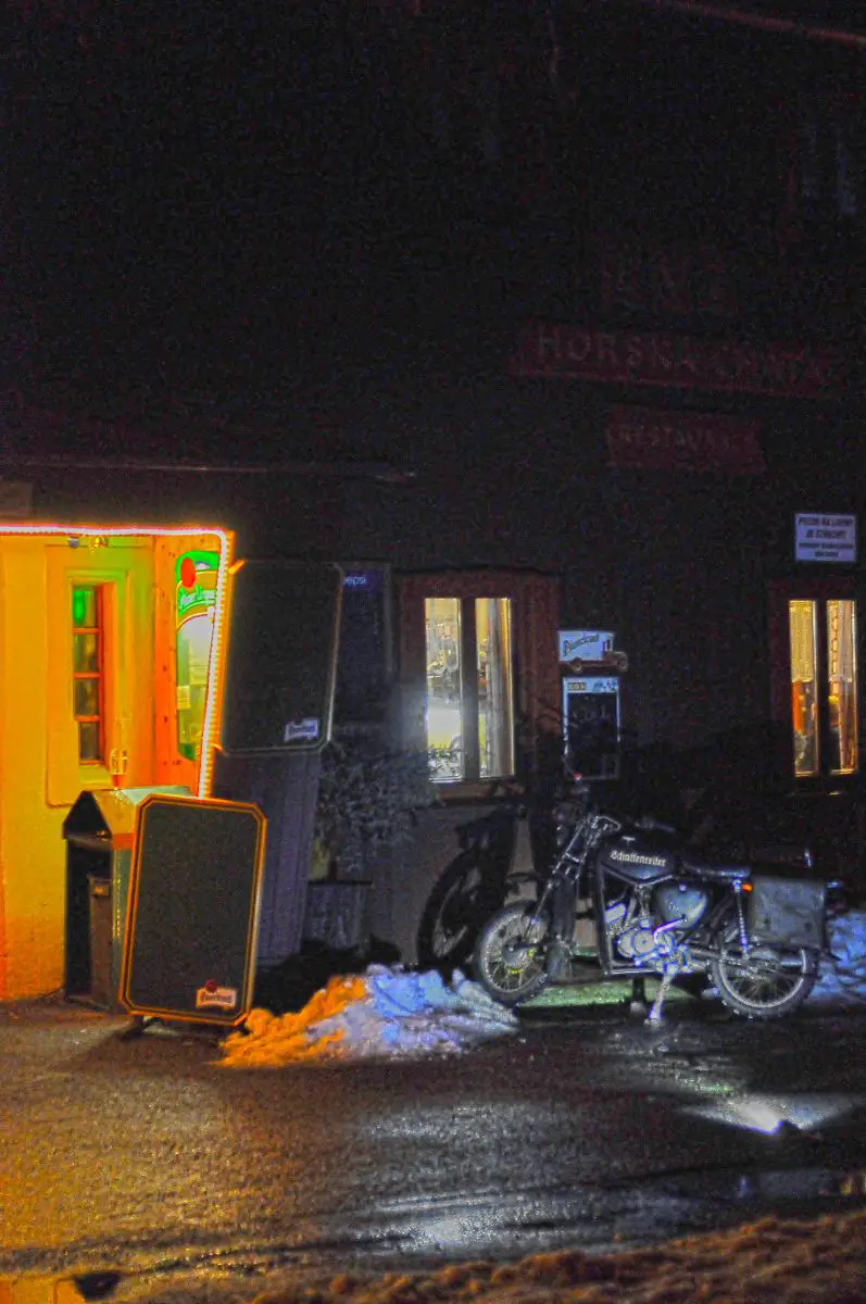 Rechtzeitig vor der Abendbrotzeit brach ich am 30. Dezember auf, Gepäck hatte ich keines, ich wollte ja am gleichen Abend zurück. Es war bitterkalt, aber trocken und im Großschönauer Tale schneefrei. Schon kurze Zeit später befand ich mich oberhalb Waltersdorfs genau auf der Grenze zu Böhmen. Hier war ich hoch genug und die Natur konfrontierte mich mit Schnee und Eis. Ich strauchelte heftig, als ich, eine Photographie machen wollend, dies vergaß. Es zwackte ganz ordentlich in den Fingern, aber so etwas ähnliches wie eine Aufnahme bekam ich doch gerade noch so hin. Dann fuhr ich, mich rechts haltend, bergan. Anfangs war der Wanderweg frei und ich machte gut Meter, doch an der Stelle, wo die Steigung ansteigt und das Herunterschalten in den ersten Gang zwangsläufig wird, ging nichts mehr. Tausende Touristenfüße hatten hier die Schneedecke zu einer dicken Eisschicht verdichtet, die tagsüber angetaut, nun wieder gefror. Rechts vom Weg stieg die Bergwand fast senkrecht in die Höhe und links fiel es ins Bodenlose. Ich versuchte noch darüberhinwegzukommen, aber meine fetzigen neuen Schlammäntel griffen nicht auf Eis und drehten sofort durch. Auch meine neuen lammfellgefütterten Winterschuhe, die mir der Rupperch brachte, sind zwar schön warm, aber, wie ich in dieser Sekunde feststellte, haben ihre Sohlen den Grip eines Stückes nasser Seife im Bad. Ich überlegte, ob ich an dieser Stelle, das Moped vor einer Eiswand, noch ein Bild machen solle, aber dafür waren meine Hände noch immer zu klamm. Also wendete ich und fuhr zur Wache an der Grenze zurück.