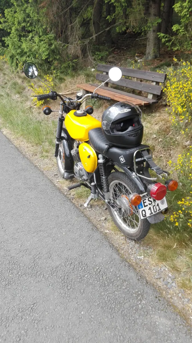 Im Winter wurde dann einiges gemacht, u.a. der Motor bei @TommyMaul, das Tankset und die Schutzis wurden von @Kädix gepulvert und vom @Simson-Peter hab ich die Buchsen bekommen. Den Rest, wie Vergaser, Auspuff, Sitzbank, Verkabelung, Bremsen, weitere Anbauteile, habe ich selbst wieder zu recht gefeilt oder ausgetauscht. Ein Originalzustand ist es nicht, da habe ich aber auch kein Wert drauf gelegt. Mir gefällt sie