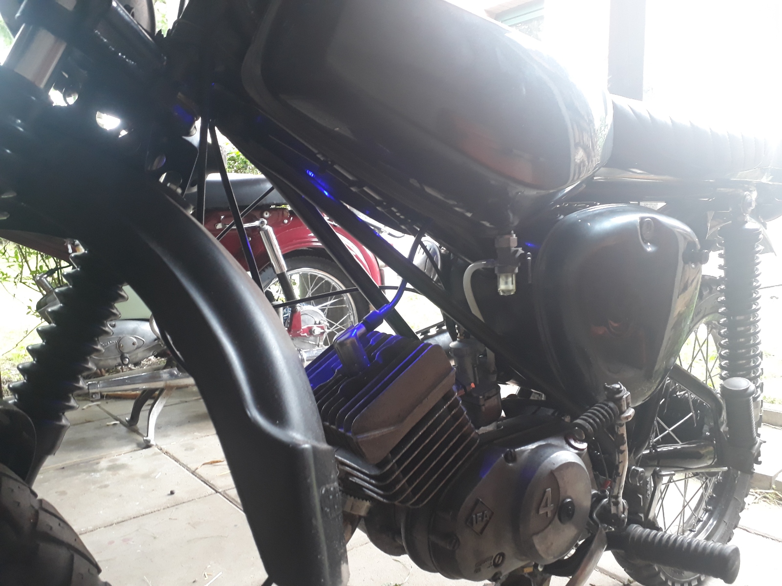 Alles ist noch Original außer der Bowdenzug für die Gangschaltung,da stimmt aber noch etwas nicht denn,der erste geht immer raus ist aber kein Problem werde das schon noch beheben.Laufen tut er 1a springt auch richtig gut an.Jetzt sind wir noch am überlegen ob wir ihn so lassen oder restaurieren.Was meint ihr?LG