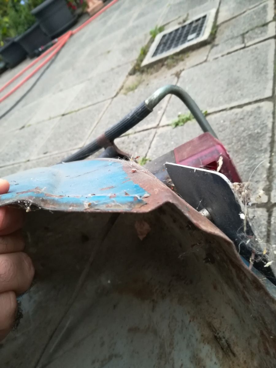 Der Motor lief tatsächlich noch, war aber in nicht so gutem Zustand. Das Motorgehäuse außen und innen im Bereich der Zündung war mit ner dicken, klebrigen schwarzen Schicht überzogen, deren Entfernung mich so einige Nerven gekostet hat. Hat aber funktioniert. Für das Ölablassen hatte ich mir im Baumarkt extra noch so nen Kanister geholt nur um dann festzustellen dass gar keins drin war