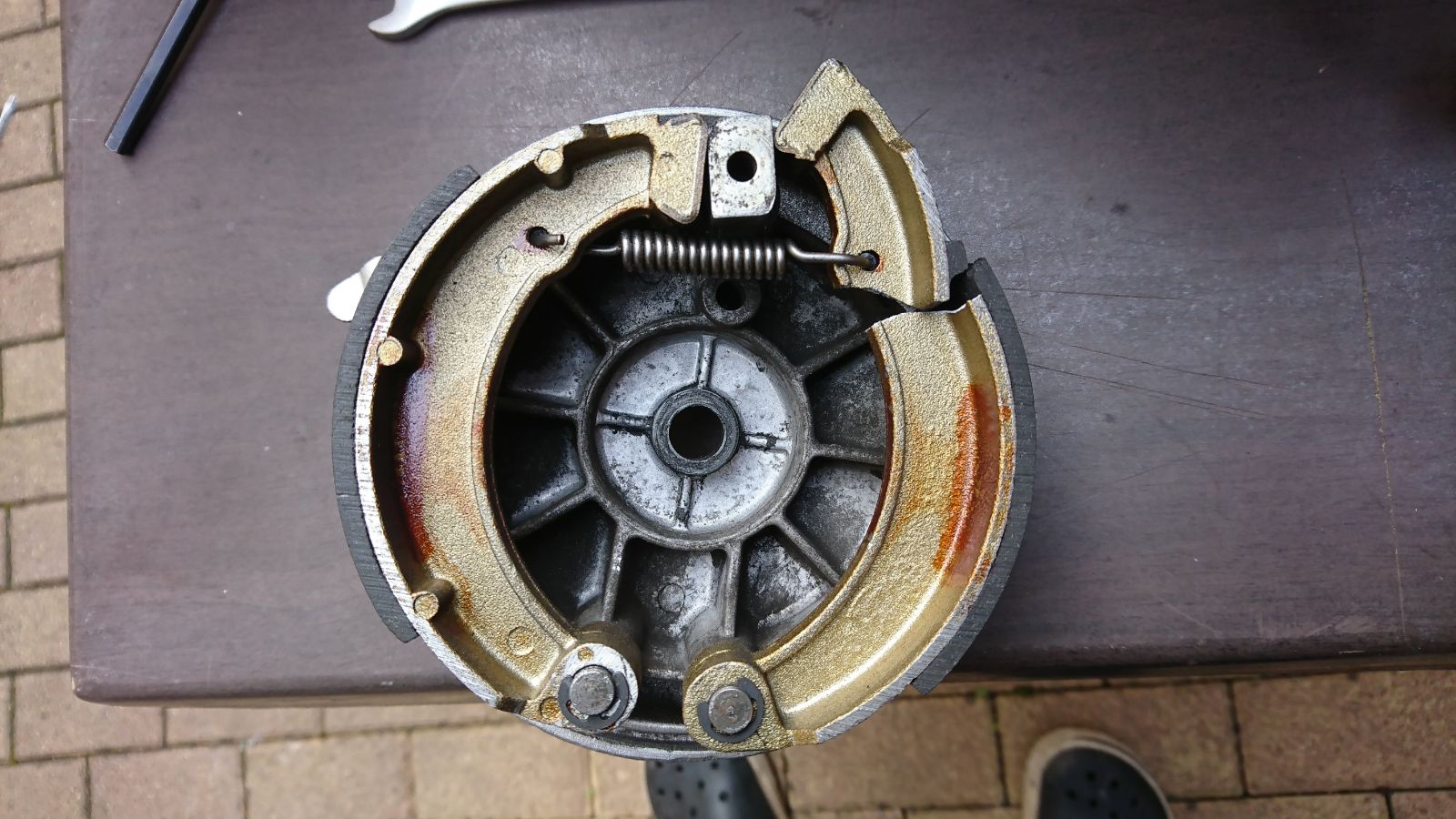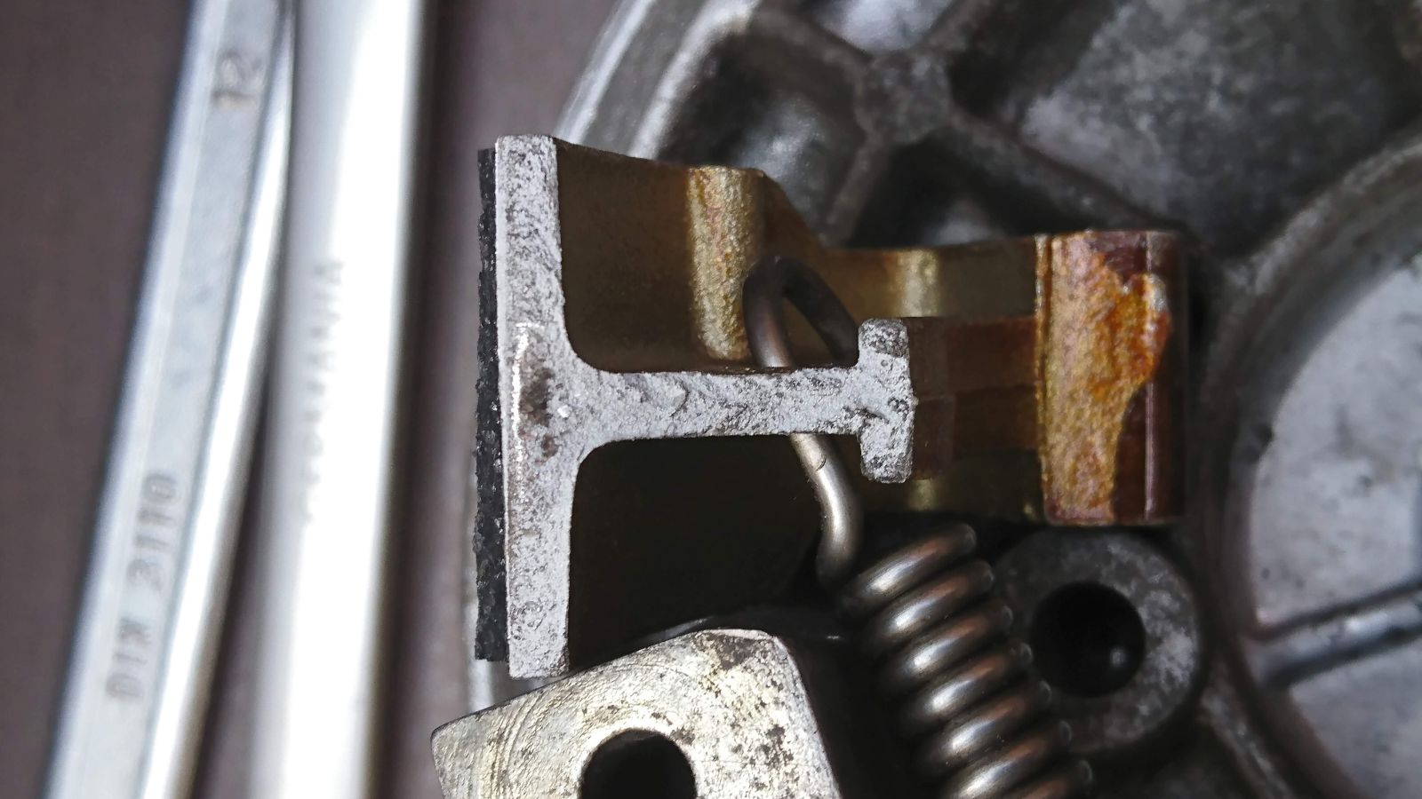 Ich wollte heute meine neuen Felgen montieren. Jetzt weiß ich, warum die hintere Bremse auf den letzten Kilometern schliff. Die Bremsbacken sind keine 500 km alt. Schlichtweg Mist.