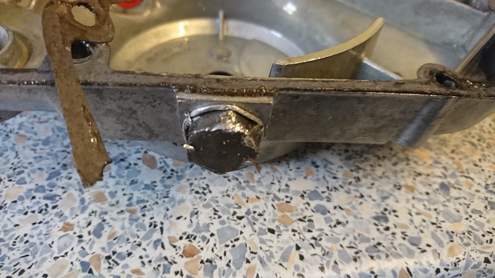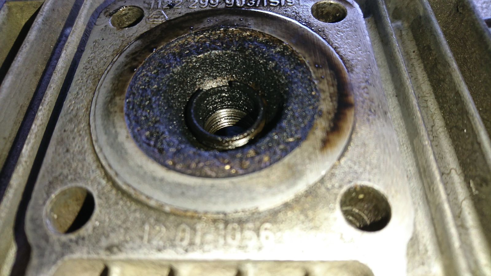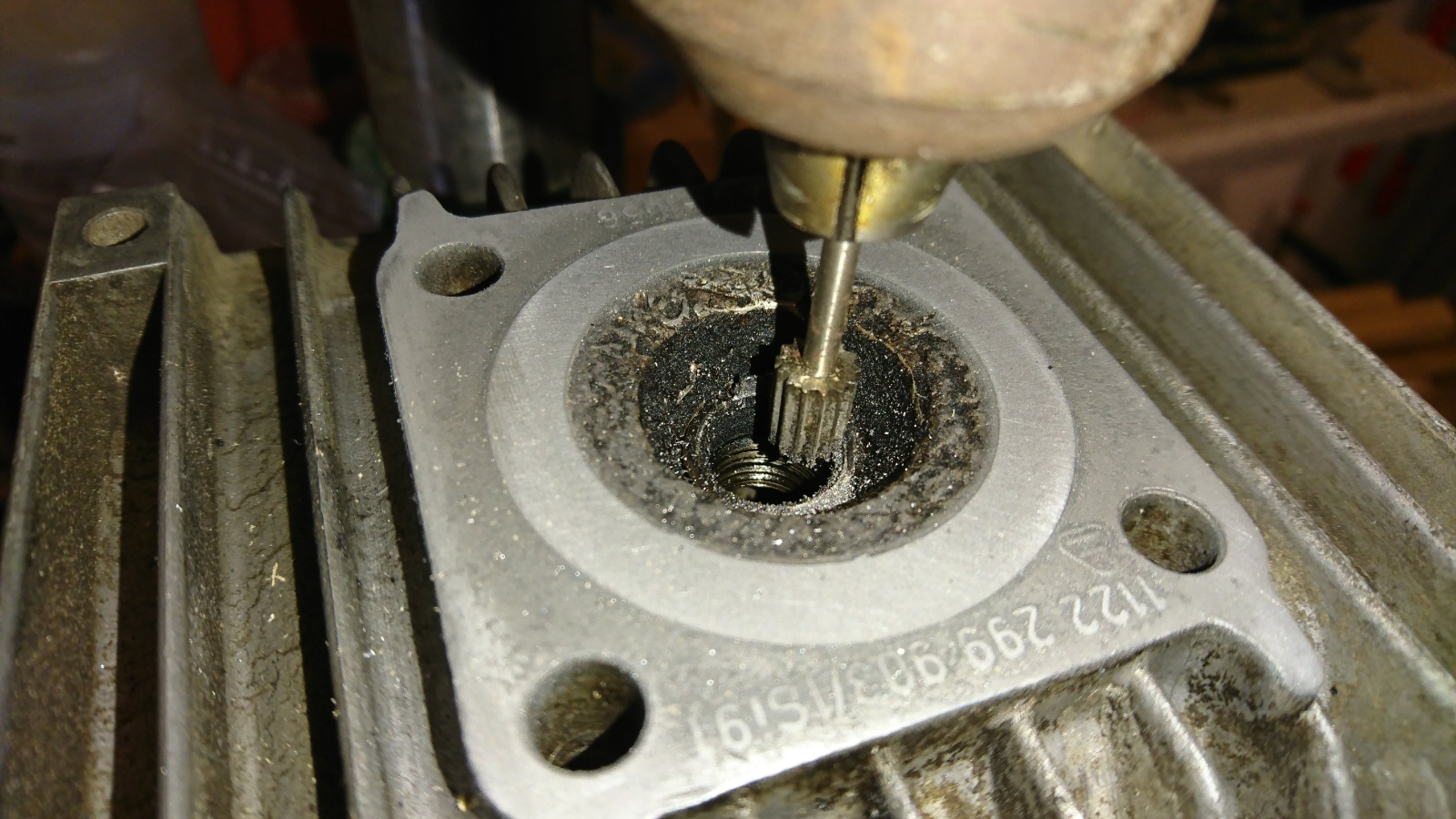 Anschließend hab ich noch das überstehende und bereits teilweise abgebrochene Ende des Helicoil-Einsatzes aus dem Zylinderkopfdeckel entfernt, welchen irgendein Vorgänger da reingedreht hat. Irgendwann wird der Deckel sowieso getauscht. Sieht grausam aus.