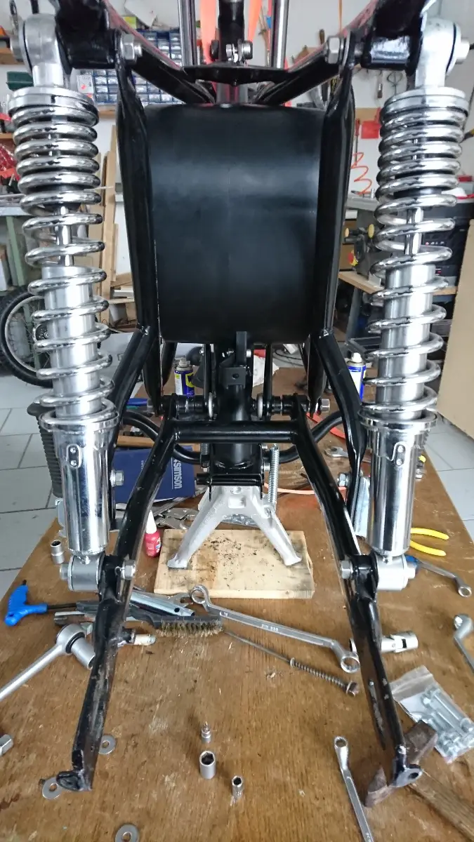 Bereits am vorletzten Montag hab ich angefangen, rund um den den deutschen Rahmen meine Ungarn-Simme wieder aufzubauen. Alle Fahrwerks- und Motorlagerungen wurden durch die PU-Teile von Simson-Peter ersetzt.