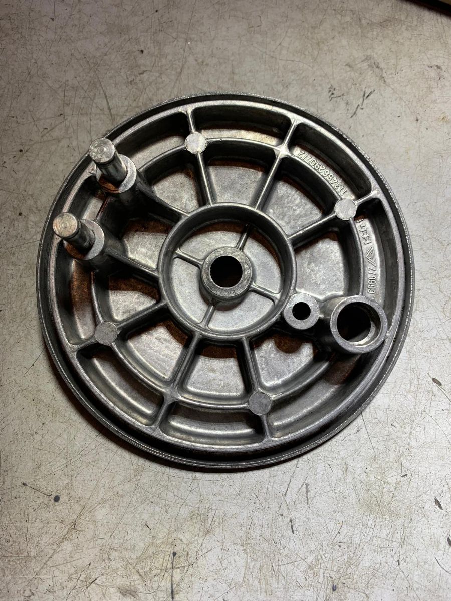 4. Die Lange M8 Schraube in den Schraubstock einspannen und mit einem Gummihammer kurz sanft gegen die Motorhälfte schlagenfertig