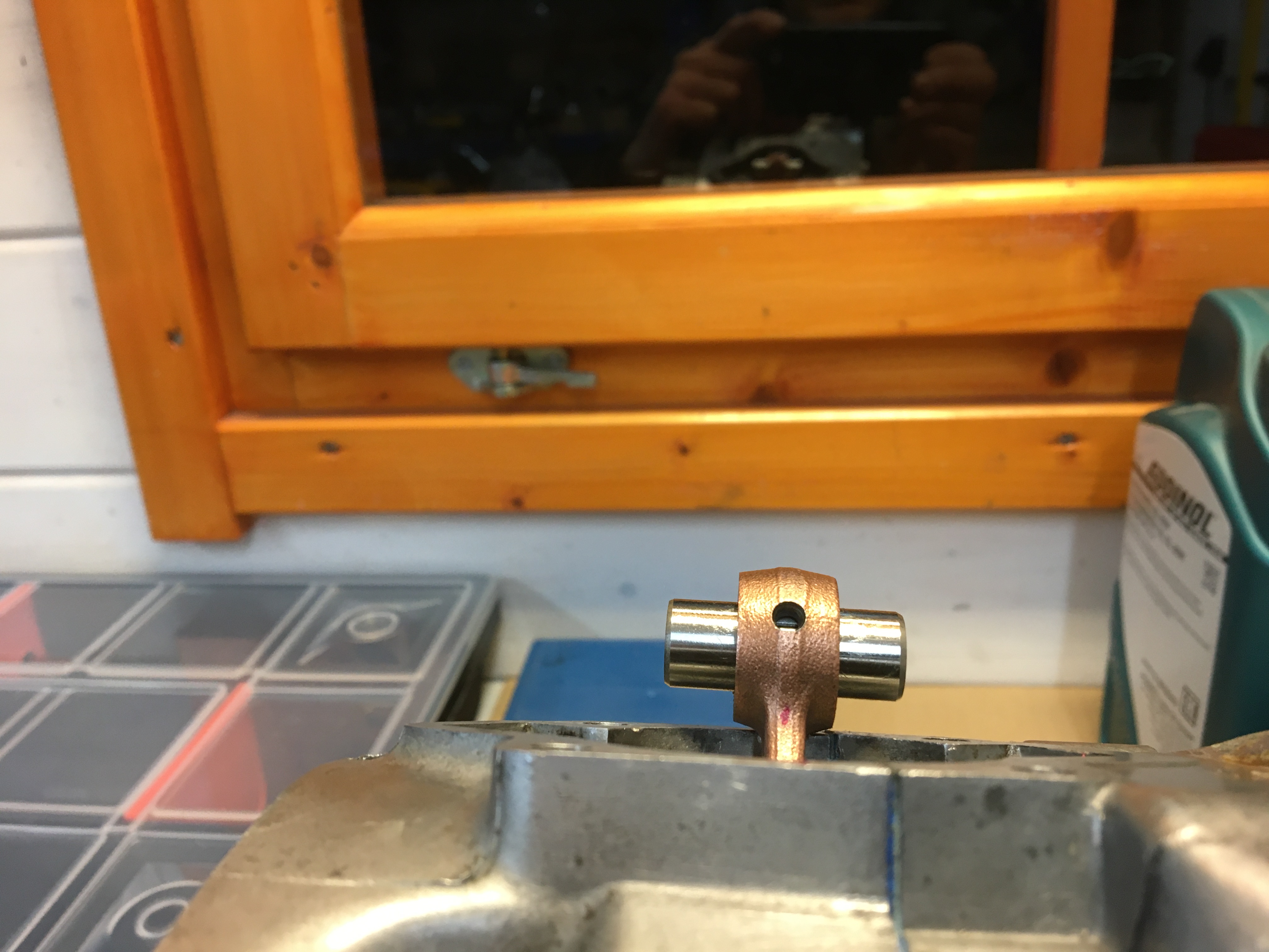 Ich habe jetzt nochmal mit einem schmalen Haarlineal vom Kolbenbolzenauge aus parallel zum Pleuel gepeilt, und da sieht es so aus , daß das Pleuel kurz oberhalb das unteren Lagers krumm ist. Ich müsste also recht tief zum richten ansetzen. Und da ist durch das Motorgehäuse nicht viel Platz.