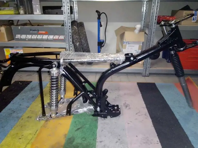 - Orginallack des Rahmens mit Schwarz metallic überlackiert.