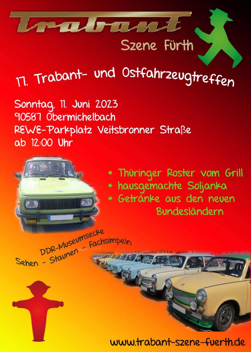 17. Trabant- und Ostfahrzeugtreffen in 90587 Obermichelbach am 11.06.2023 ab 12:00 Uhr