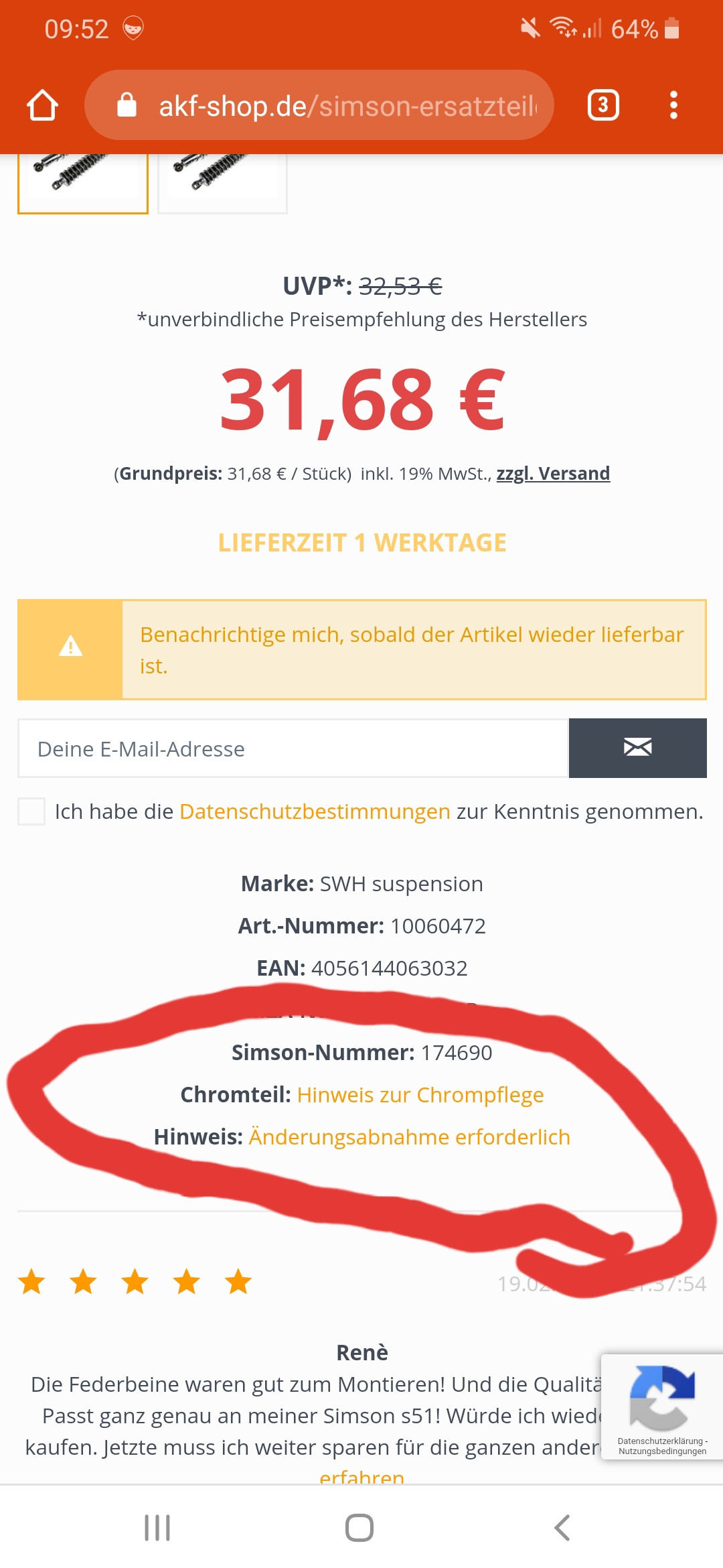 ich habe versucht so viel wie möglich zu erhalten und nur das nötigste / Verschleißteile zu erneuern ...und wenn dann möglichst das beste gekauft .. zb Fussrastenträger vorne .. gibts für 8 Euro oder einen Verstärkten der wirklich passt für 25€