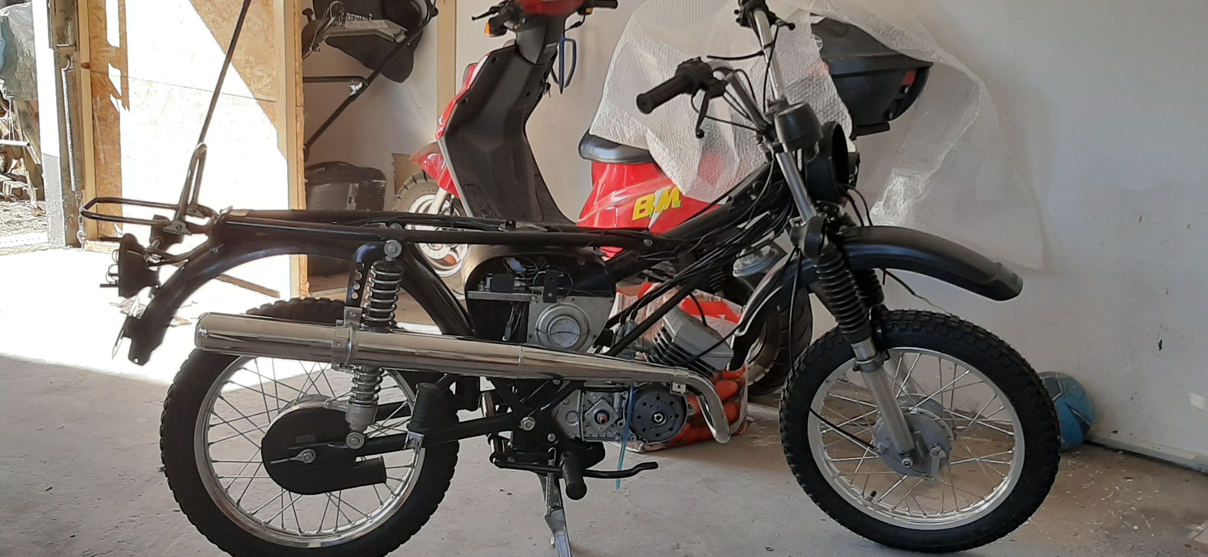 Ganz Klar es ist keine richtige Restauration ,,, da nicht zu 100% wie es mal war .. Fussrastenträger vorne ohne Seitenständer ( gibts aber bei den Verstärkten nicht !?! ) hinten fussrasten vom S50 ...Vape..Rahmen Pulverbeschichtet ....