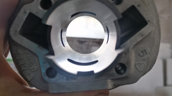 Alleine im Auslasskanal stand die Laufbuchse ringsum 2mm über der Kontur vom Aluguss, also Strömungsgünstig ist was anderes. Beim Einlasskanal war es ähnlich.