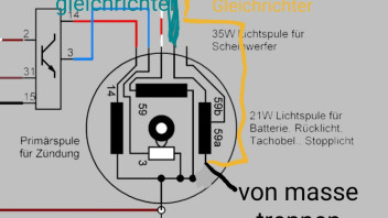 Hab bitte etwas Nachsicht mit mir. Das verstehe ich gerade leider nicht. Meinst Du weiterhin den vierpoligen Regler? Wo geht dann die zweite Leitung von der Spule dran? Oder meinst Du den 5 Poligen? Hast du dazu ein Schaltplan?