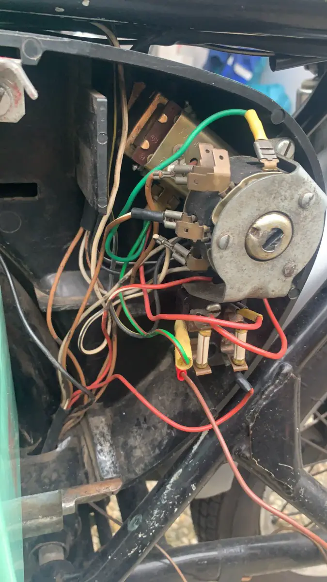 Zum hause batterie aufgeladen und angeschlossen. Gleich einer alte elektronik luft die ab 10 meter abstand noch riechst. Blinker gepruft. Funktionieren richtig. Aber die ladeanlage wird sehr heiss.... Du brennt deine finger du der ein fuhlt. Motor an geschmissen. Blinker funtionieren aber sehr swach. Bremseleucht is auch sehr swach. Batterie ab gemacht und bremstleucht is wieder hell. Lageanlage ab gemacht und dan ist auch das bremseleucht sehr hell.