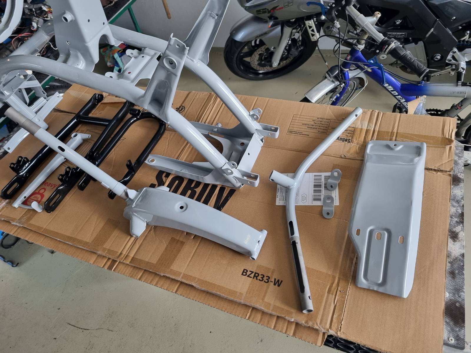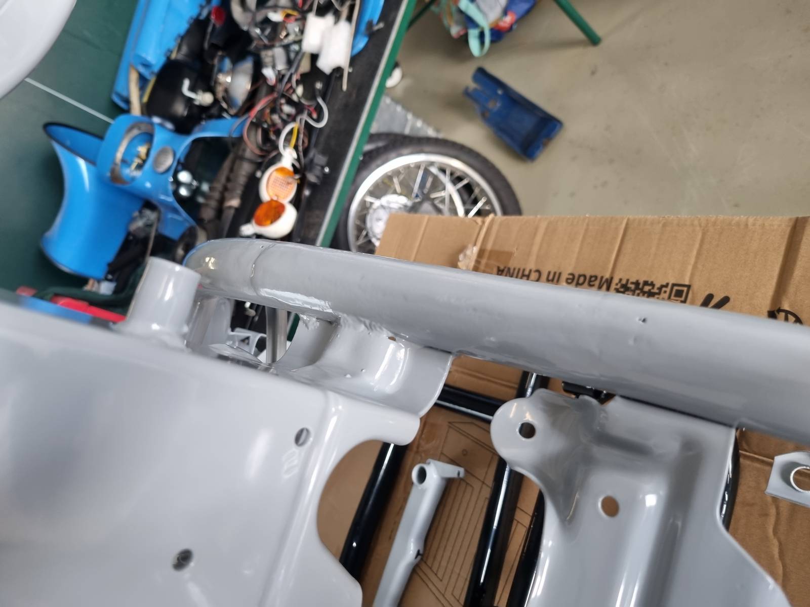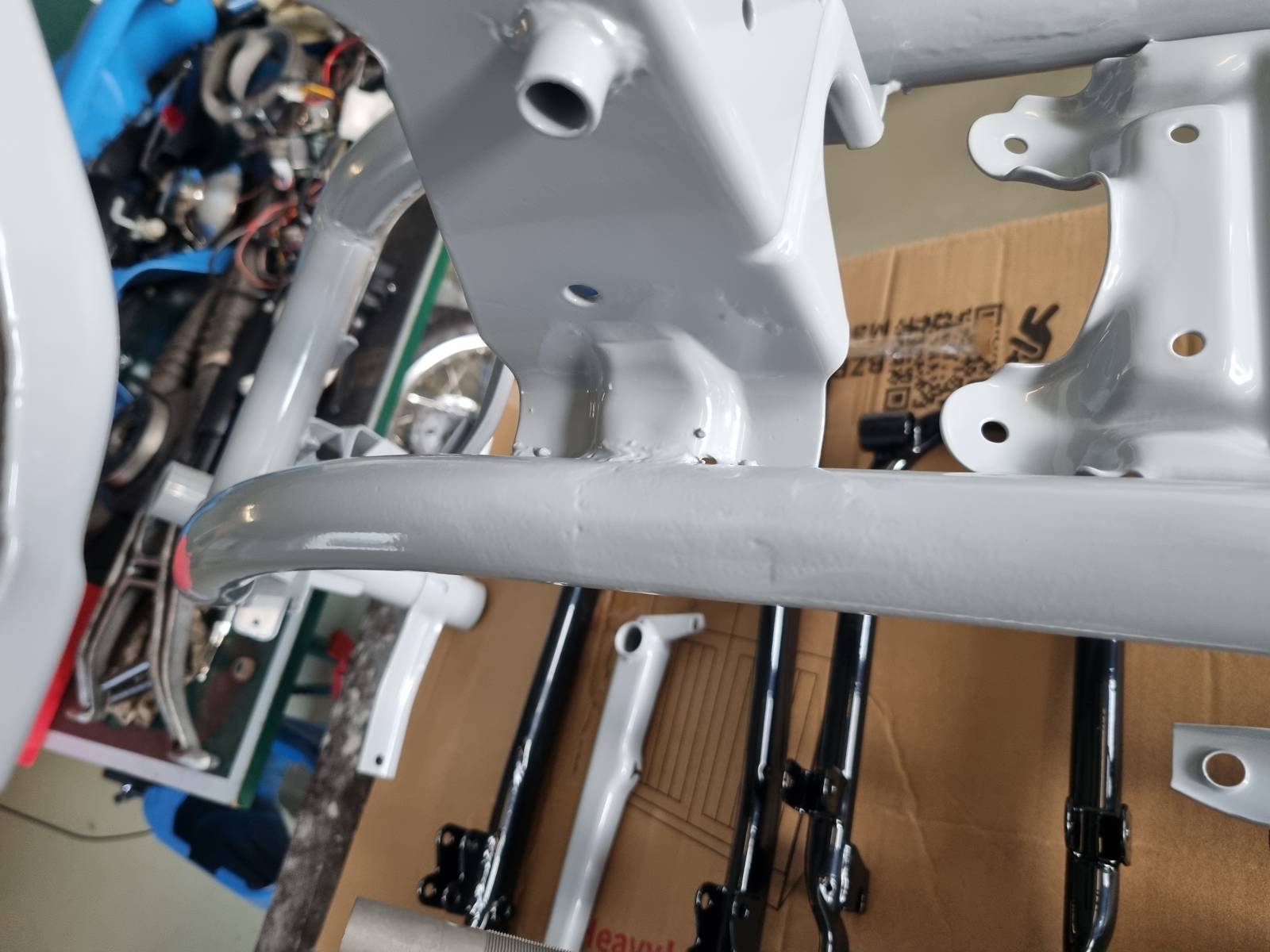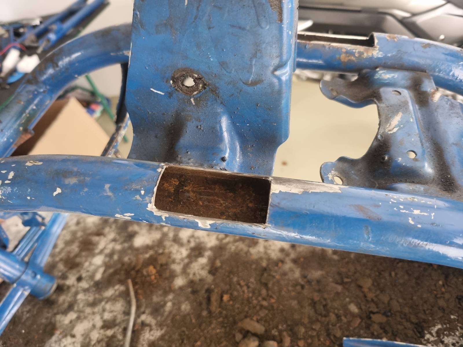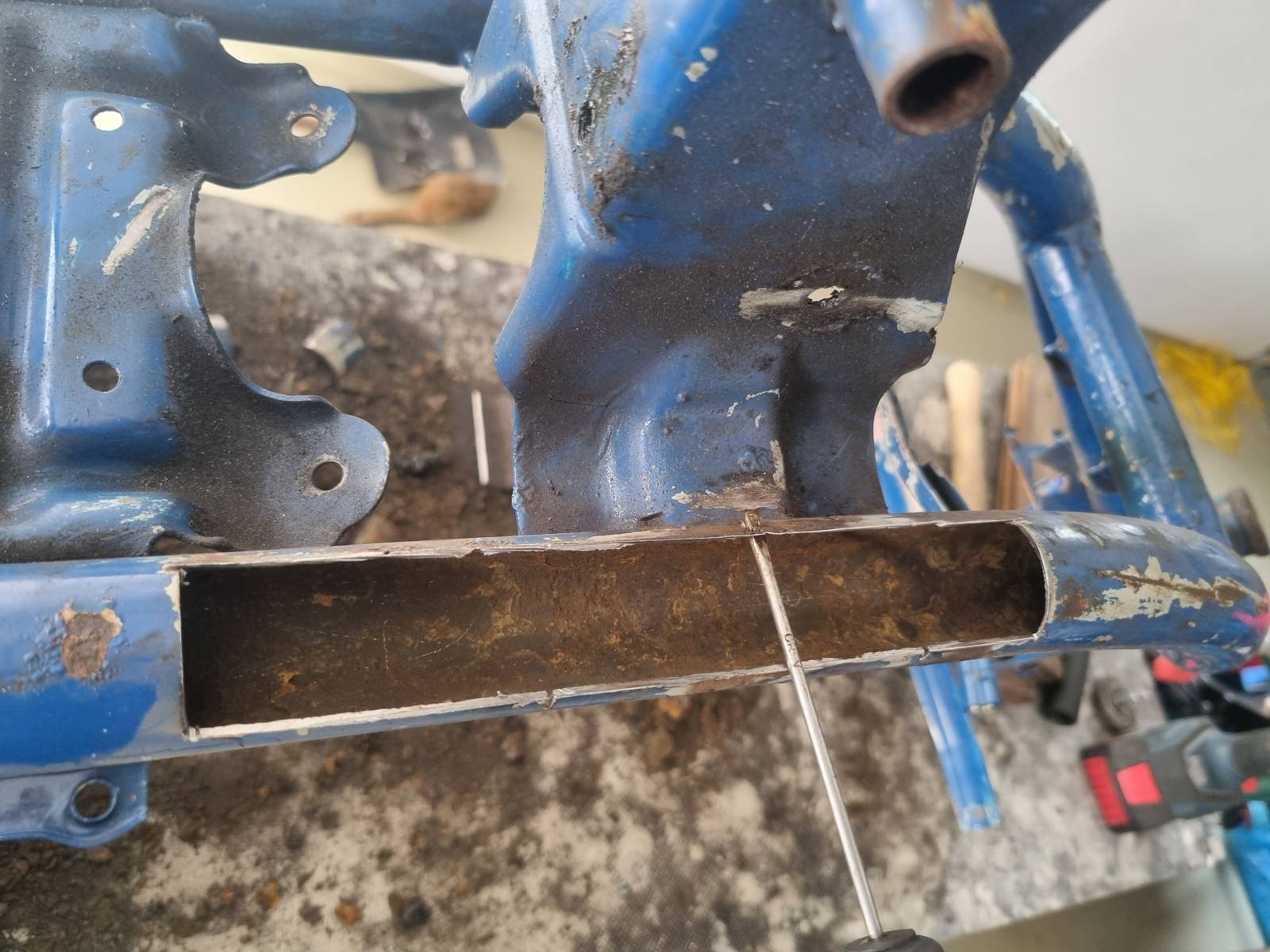 In den Rahmen wurde zur Verstärkung noch ein Flacheisen geschweißt. Muss dann mal sehen, ob ich da mit der Verlängerung vom Fluid Film durch komme.