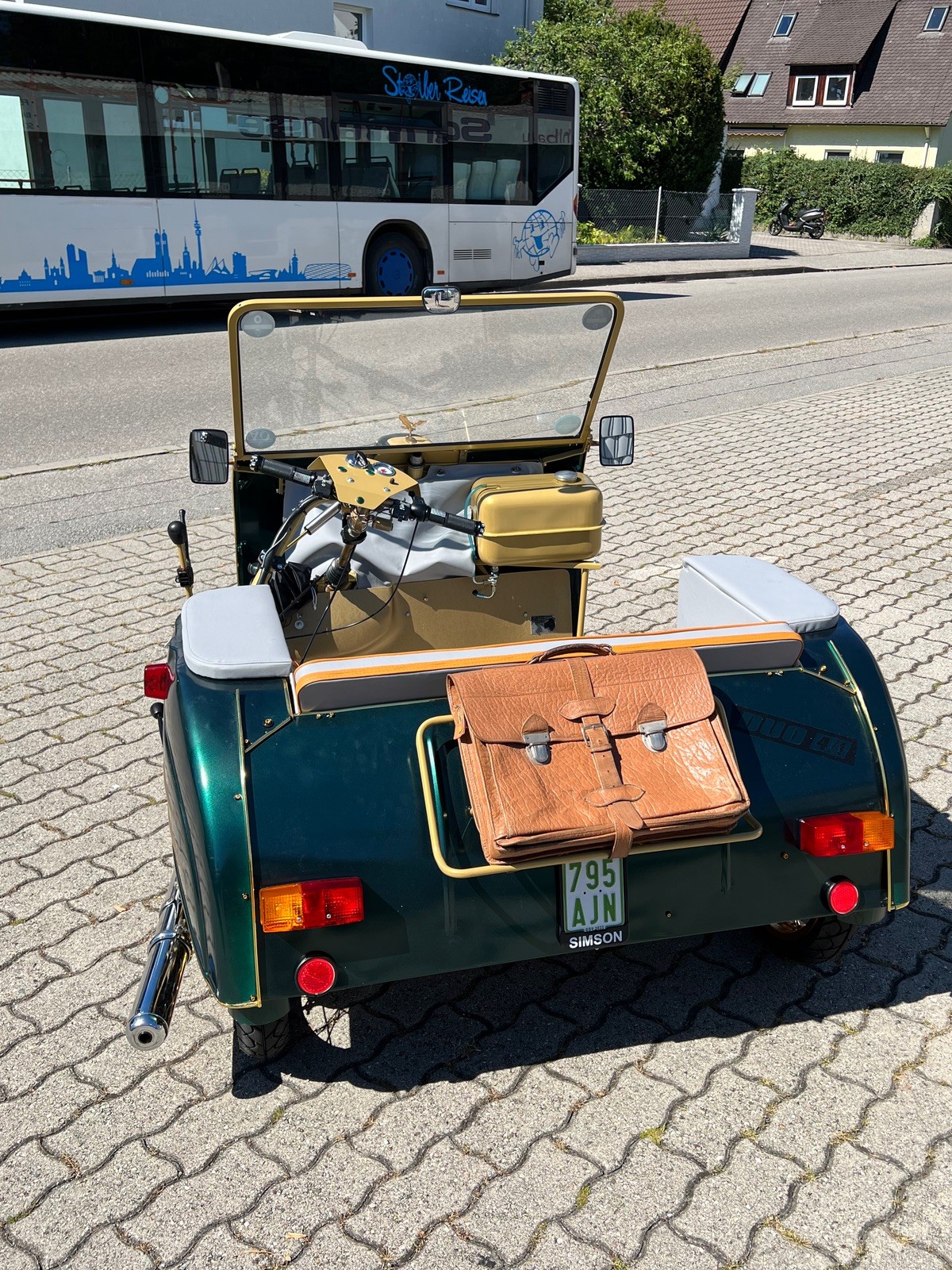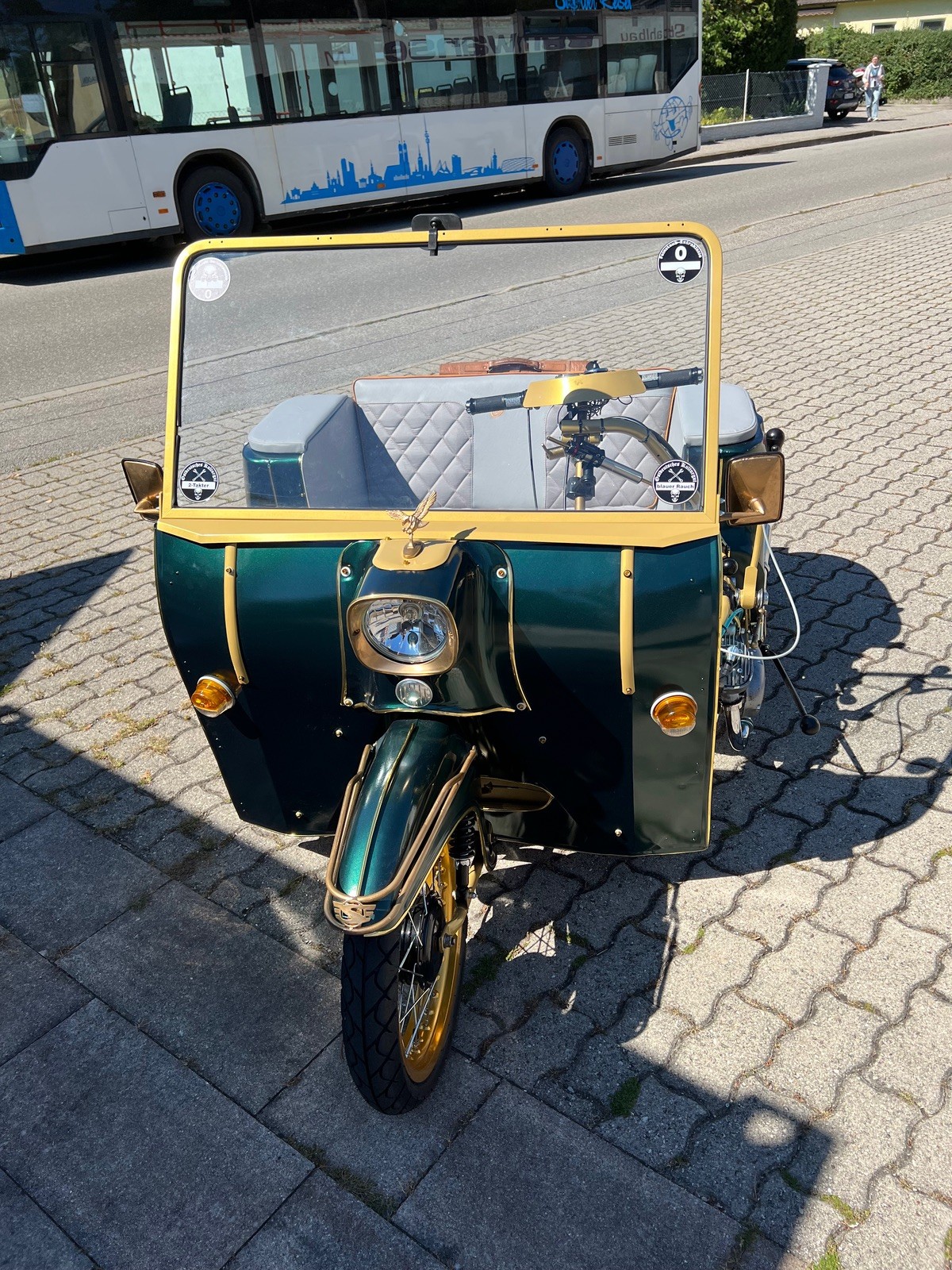 Nachdem ich erfahren hatte, dass ohne Dachgestell mit Helm gefahren werden muss, habe ich das Dachgestell nun doch montiert und mit Sonnendach bekleidet 😅!