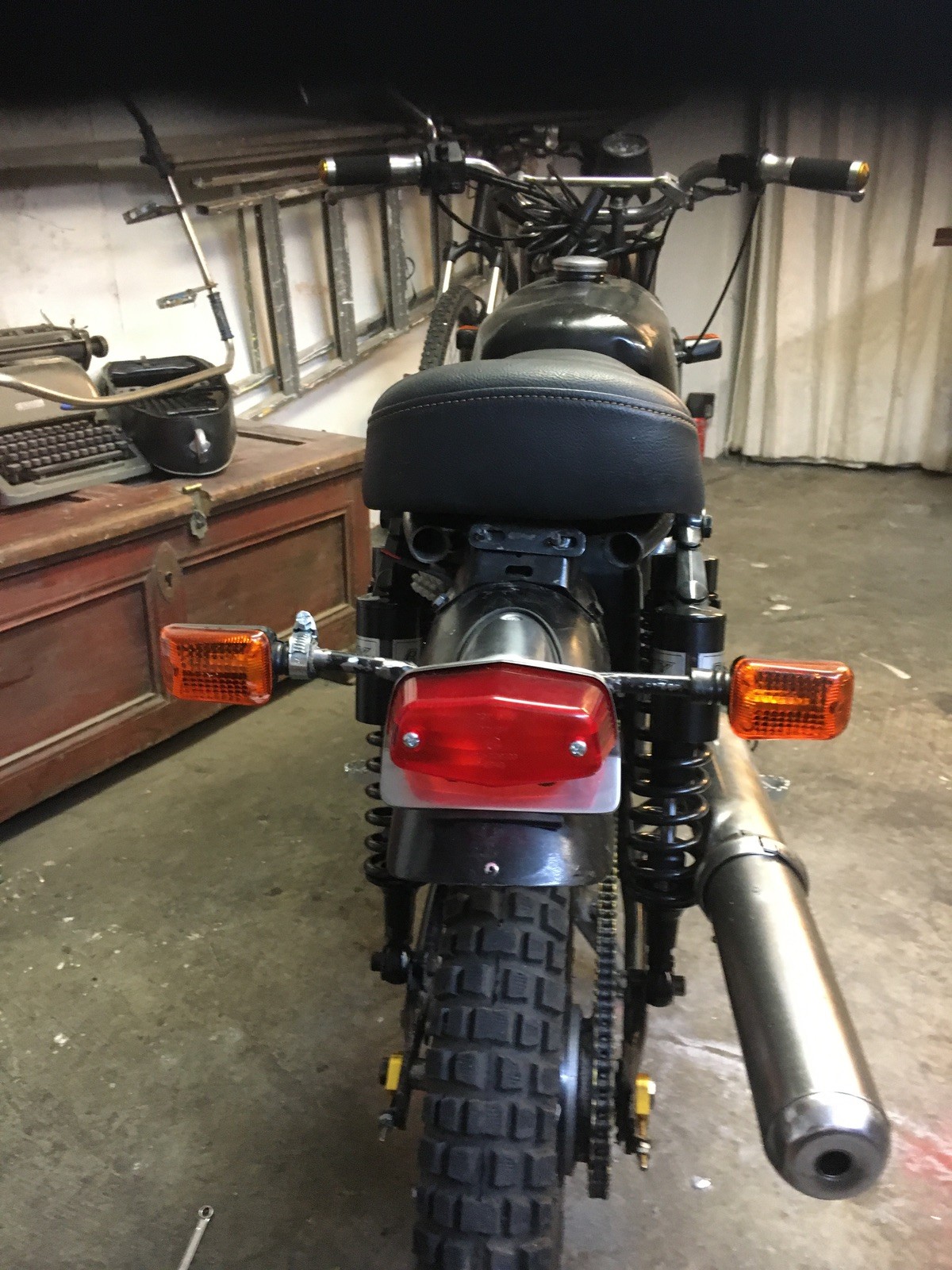 Oberhirten gekürzt und kurze gesteppte Bank , keine Fussrasten hinten . Gasdruckdämpfer schwarz hinten , crossfussrasten .