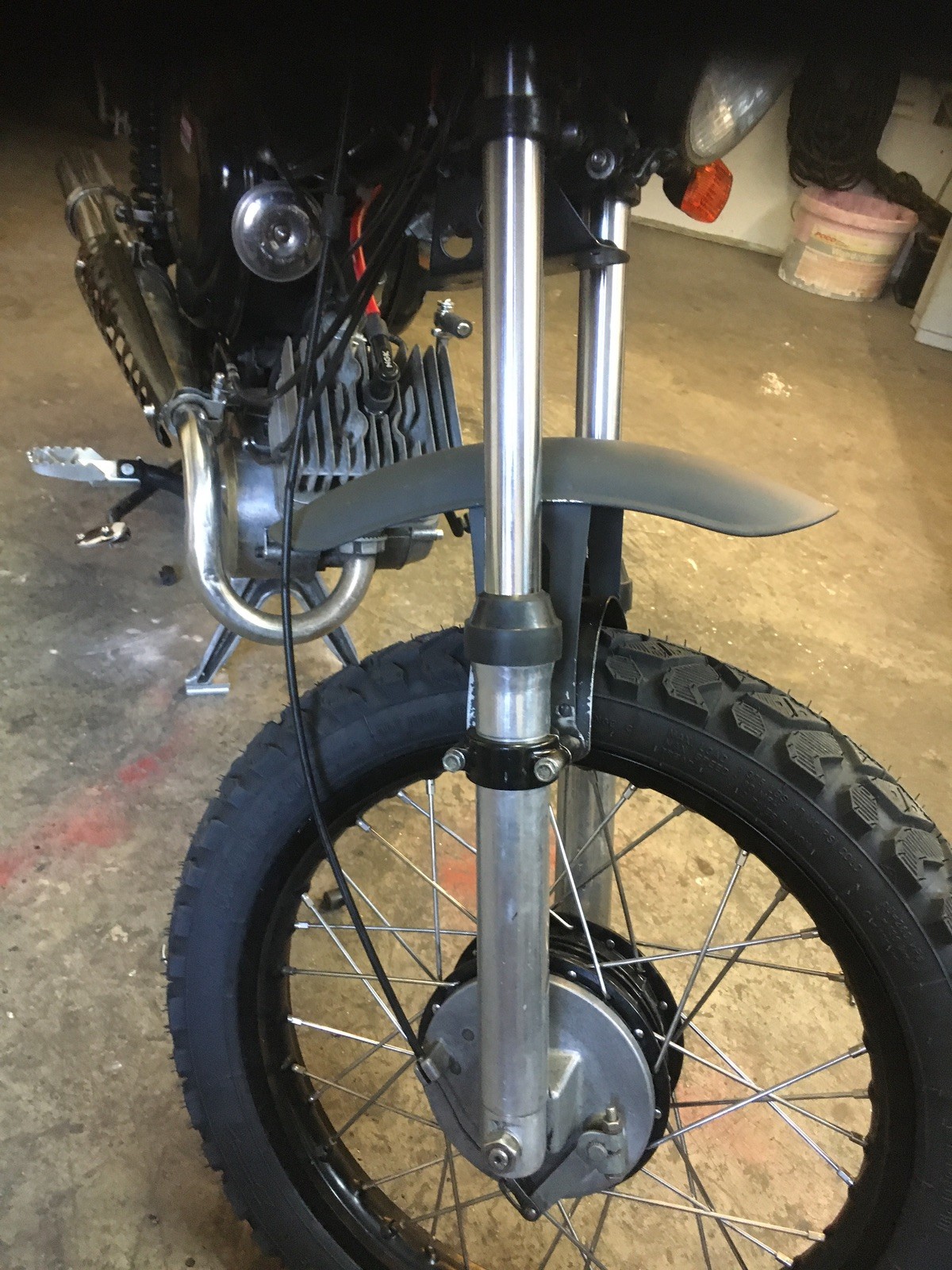 Offene Kette , Kette Gold und spanner in rot . Schutzbleche gekürzt , vorn hochgesetzt .