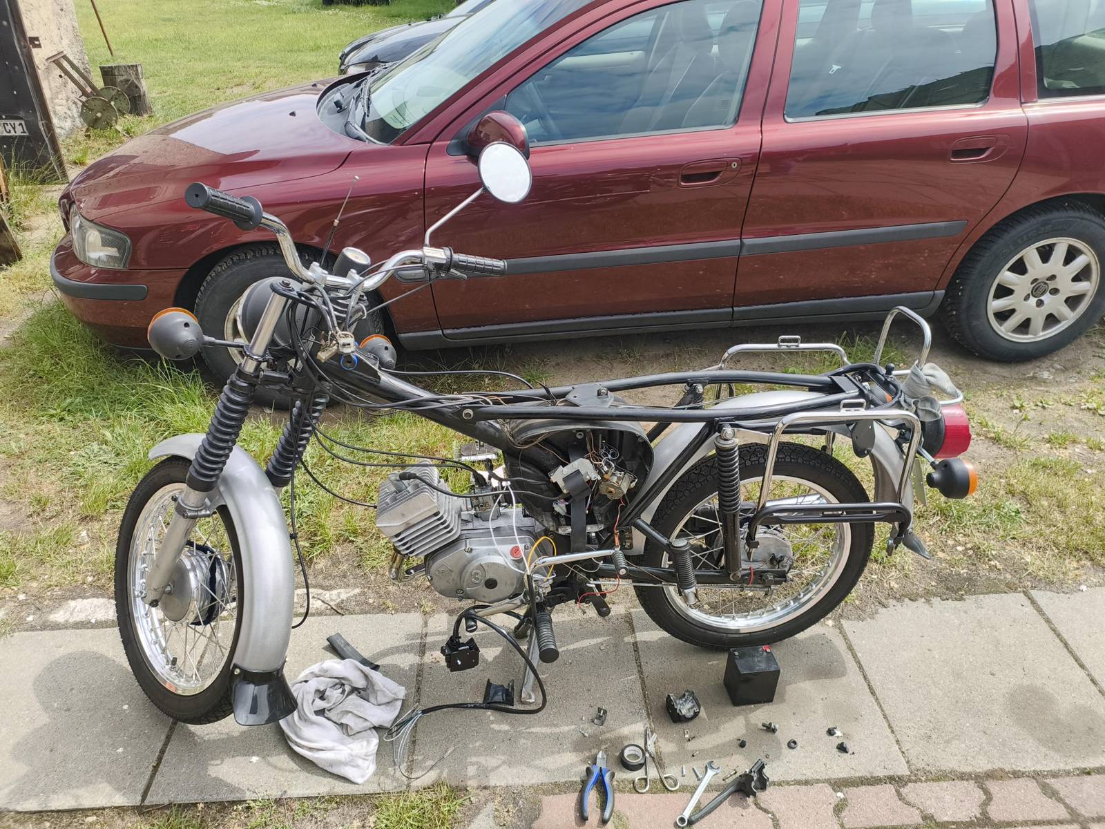 Zwar nicht heute, sondern an einem Wochenende im Juni, als Nachtrag: Ich musste leider einen Teil des Kabelbaums erneuern. Incl. Blinkergarnitur. Durch den defekten Hup-Schalter kam es regelrecht zu einem Kabelbrand. ...