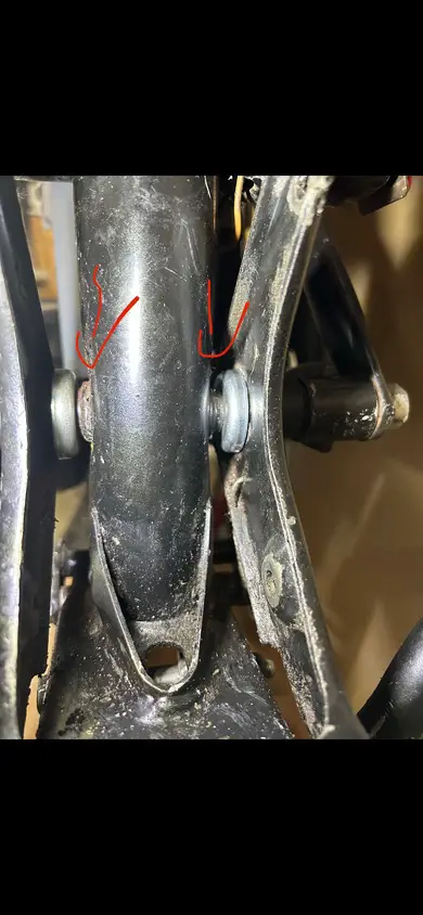 Das blöde -> es scheint alles richtig zu sein. Der in Fahrtrichtung rechte (der auf dem Bild also links) hat eine weiter herausstehende Aufnahme für die Buchse. Dafür ist die Hülse im Rahmen kürzer als auf der linken Seite (auf dem Bild rechts)