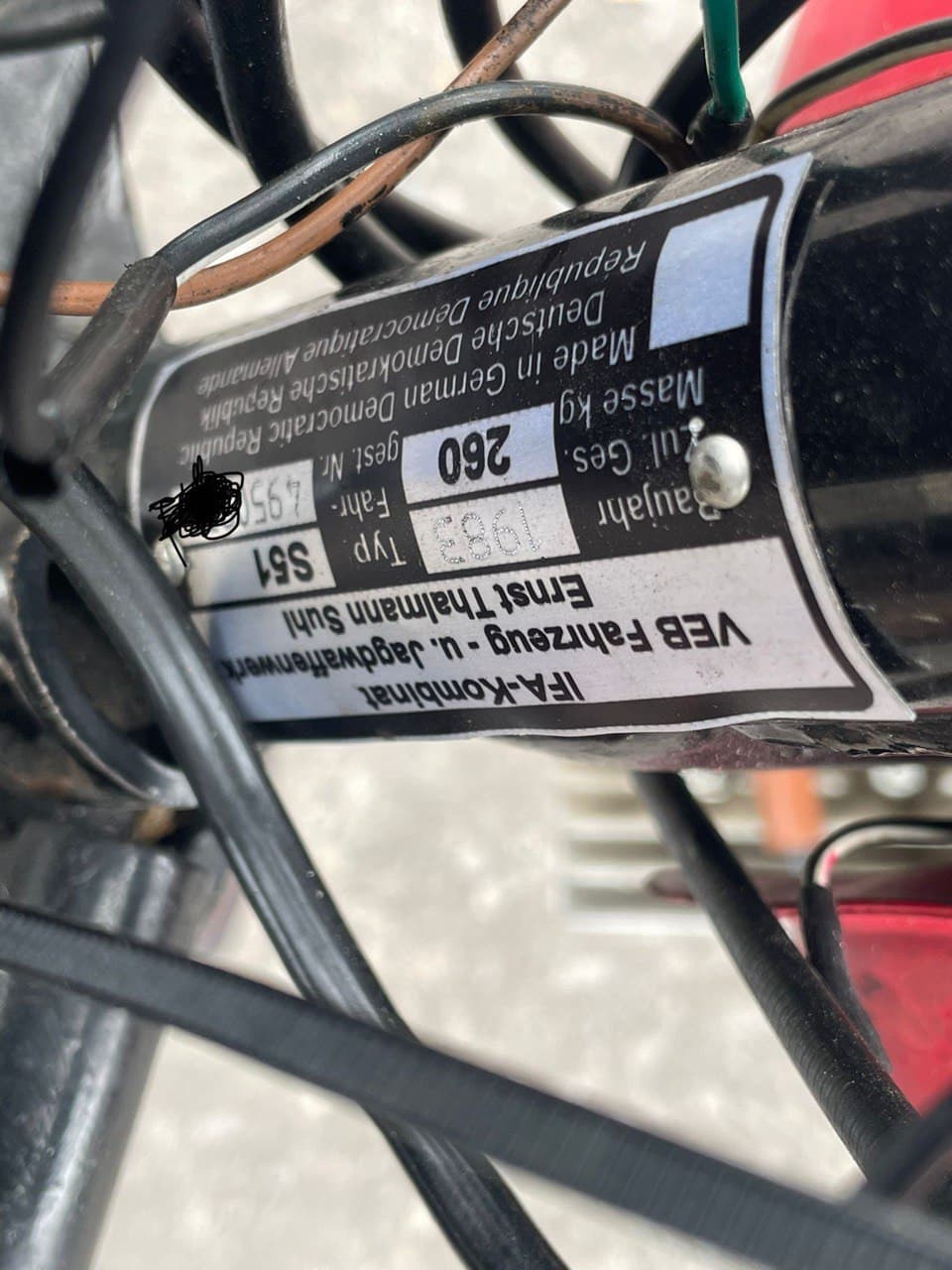 Es geht um meine Simson S51 Enduro, diese habe ich angekauft vor ein paar Jahren (natürlich ohne Papiere). Die Historie ist, dass die Maschine mal einen Unfall hatte und somit einen Austauschrahmen bekommen hat, die Fahrgestellnummer ist 4950XXX.
