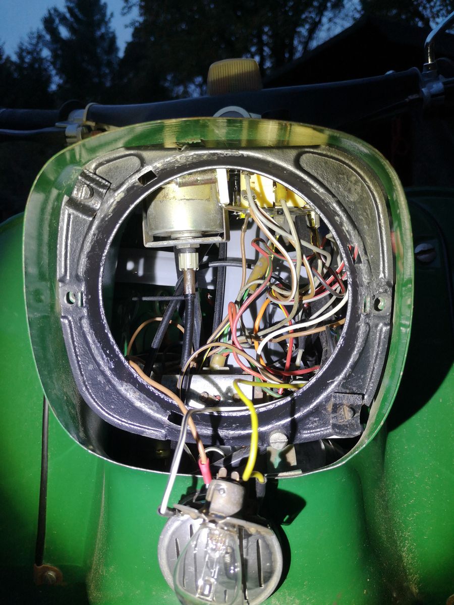 Er fügte hinzu das Frontlicht funzt nicht richtig, mal an mal aus eventuell Glühbirne... Was grade wie oben beschrieben mein 2. Problem ist...Heute noch mal geschaut, neue Birne, aber selbige Problematik..