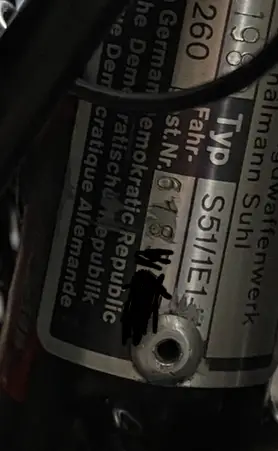 Ich habe vor einiger Zeit leider unwissentlich eine S51 als Exportmodell gekauft. Am Typenschild war bzw. ist ein H eingraviert, welches aber fast komplett abgeschliffen wurde. Die Kba Papiere habe ich bevor ich das bemerkt habe beantragt und jetzt natürlich die Absage bekommen. Jetzt würde ich zum TÜV gehen und eine Vollabnahme machen. Soweit ich weiß, braucht man dafür eine Unbedenklichkeitsbescheinigung oder ? Meine örtliche Polizeiwache macht diese zum Glück noch, diese hat mir aber auch gesagt, dass das Typenschild nicht beschädigt sein darf. Jet meine Frage: zählt das Typenschild als beschädigt wenn dieses H fast komplett abgeschliffen ist ? Und macht der TÜV dann Probleme ? Ich habe nämlich in einem anderen Forum ein Dekra Schreiben gefunden ( vom August 2020), wo drinsteht, dass es nur den Anforderungen der DDR entsprechen muss und dann der Ort der erst Inbetriebnahme egal ist, um die 60km/h Kleinkraftrad Papiere zu bekommen.