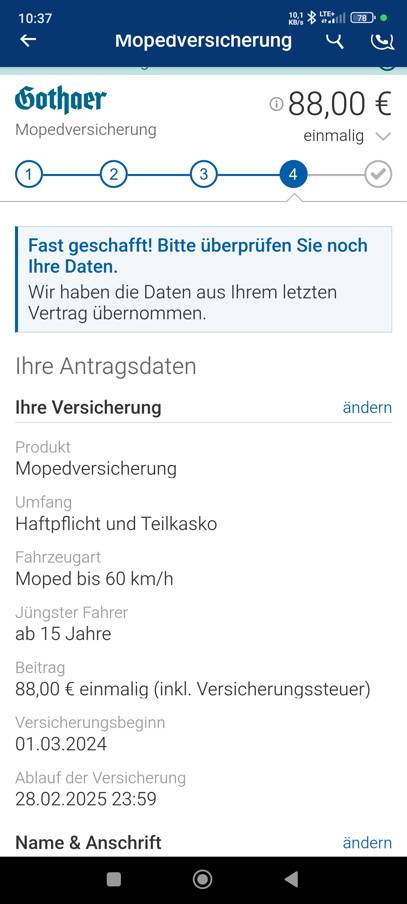 Schön wärs. Ohne Teilkasko 80€, inkl. Teilkasko 140€