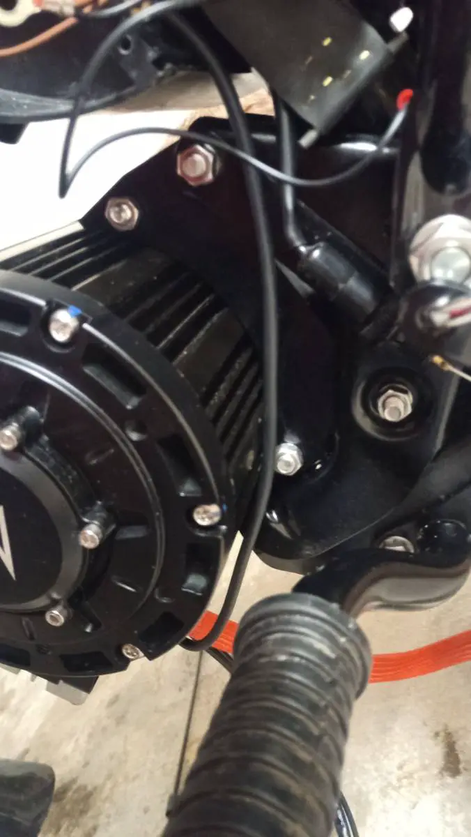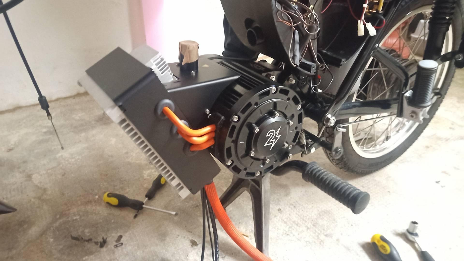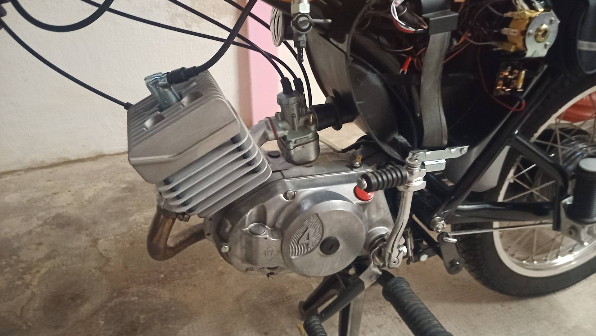 Die Motorlagerschraube habe ich vorher gelockert, den neuen Motor eingesetzt und den wieder festgeschraubt. Im Set lagen eine Edelstahl und eine Stahlschraube dabei - hab mal nachgefragt, was der Sinn dahinter ist. Ich habe meine vorhandenen Edelstahlschrauben weiterverwendet (das Moped wurde ja erst vor knapp einem Jahr neu aufgebaut).