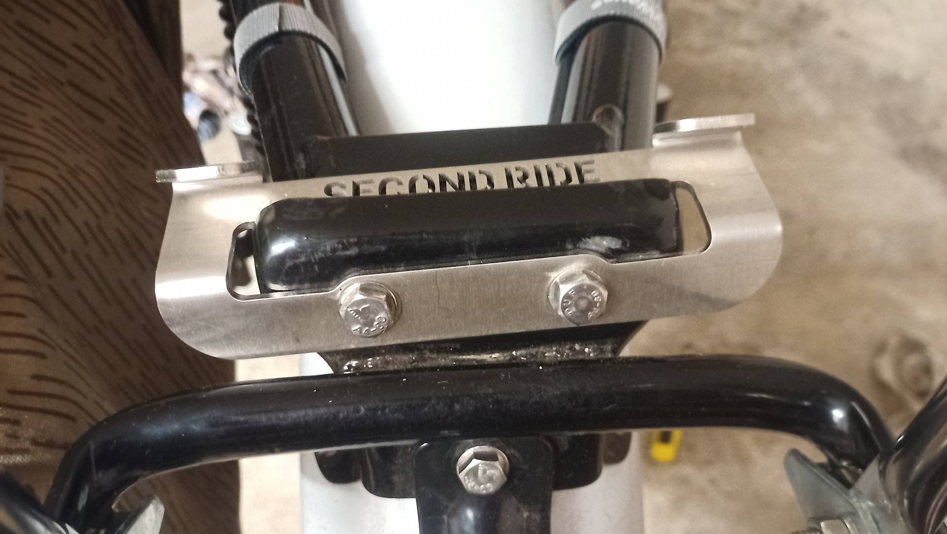 Das Gewinde der rechten Schraube wollte nicht fluchten. Irgendwie wollte der Halter rechts nicht ganz runter und/oder der Gepäckträgerhalter/Obergurt hatte etwas dagegen. Kann auch an den Nachbauteilen liegen, aber am Ende habe ich die Schrauben mit hängen und würden reinbekommen - hoffe die müssen nicht mehr raus.