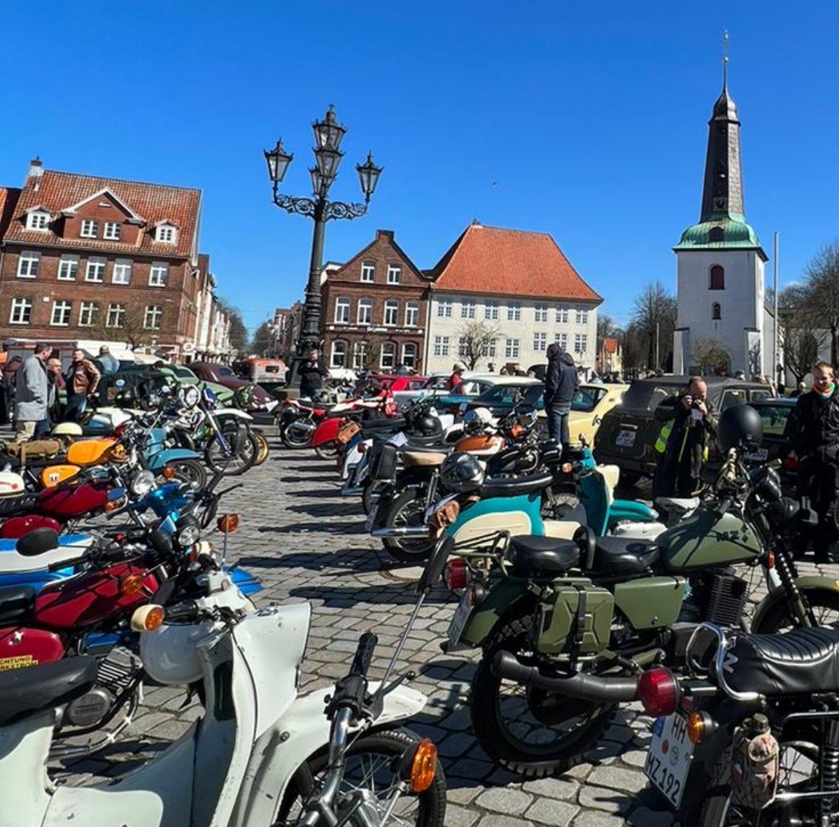 Schöner Saisonbeginn mit ner gemeinsamen Ausfahrt nach Glückstadt mit über 100 2 und 4 Rädern