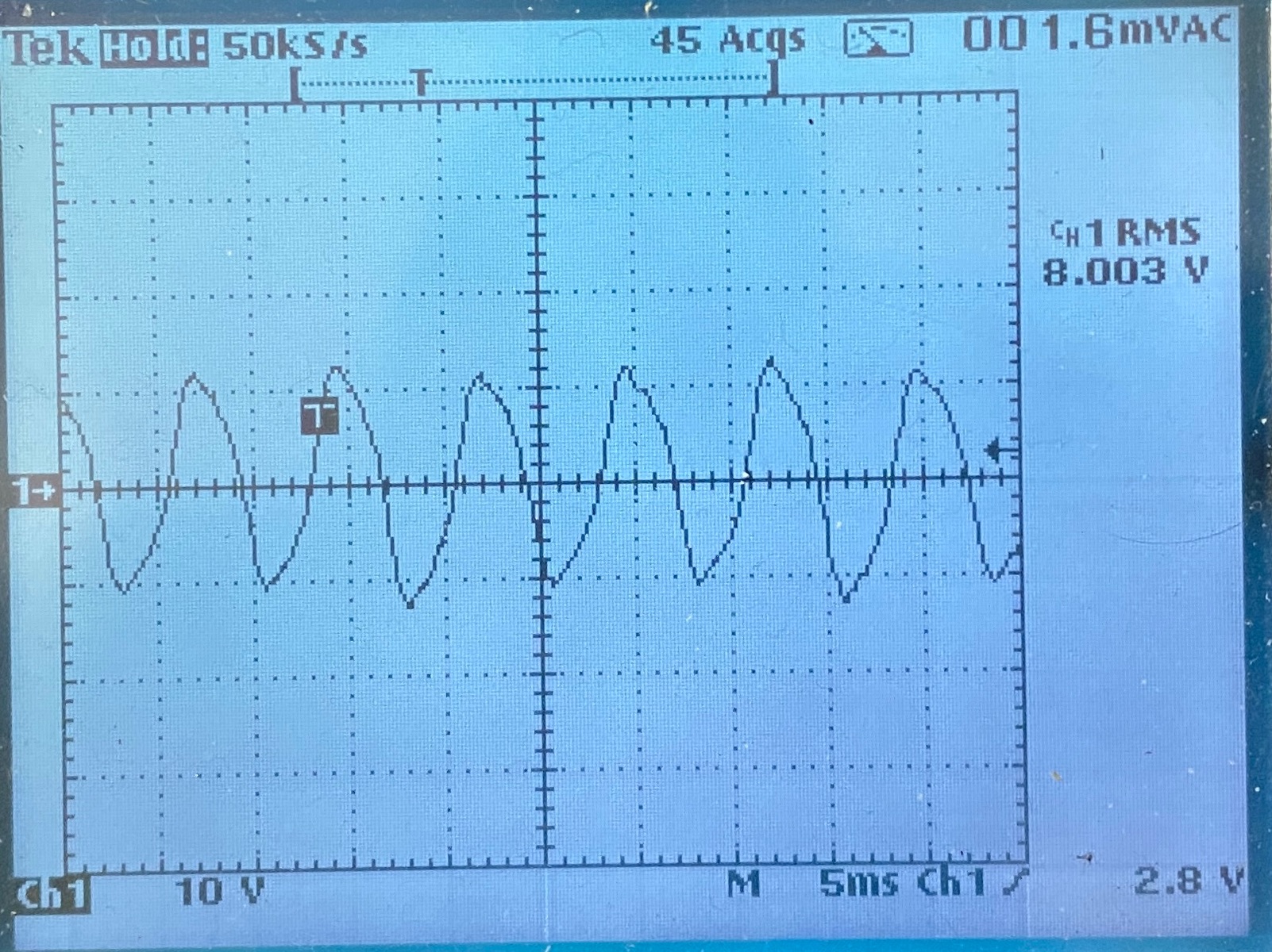 Hab mal 3,2 K als Last an die Ladespule gebracht, Scheitel sind dann bei höheren Drehzahlen 600 V/ RMS ist 350 V und es fließen 110 mA durch die Widerstände, das sind 40 W die da verbraten werden/ müssten, unglaublich ?