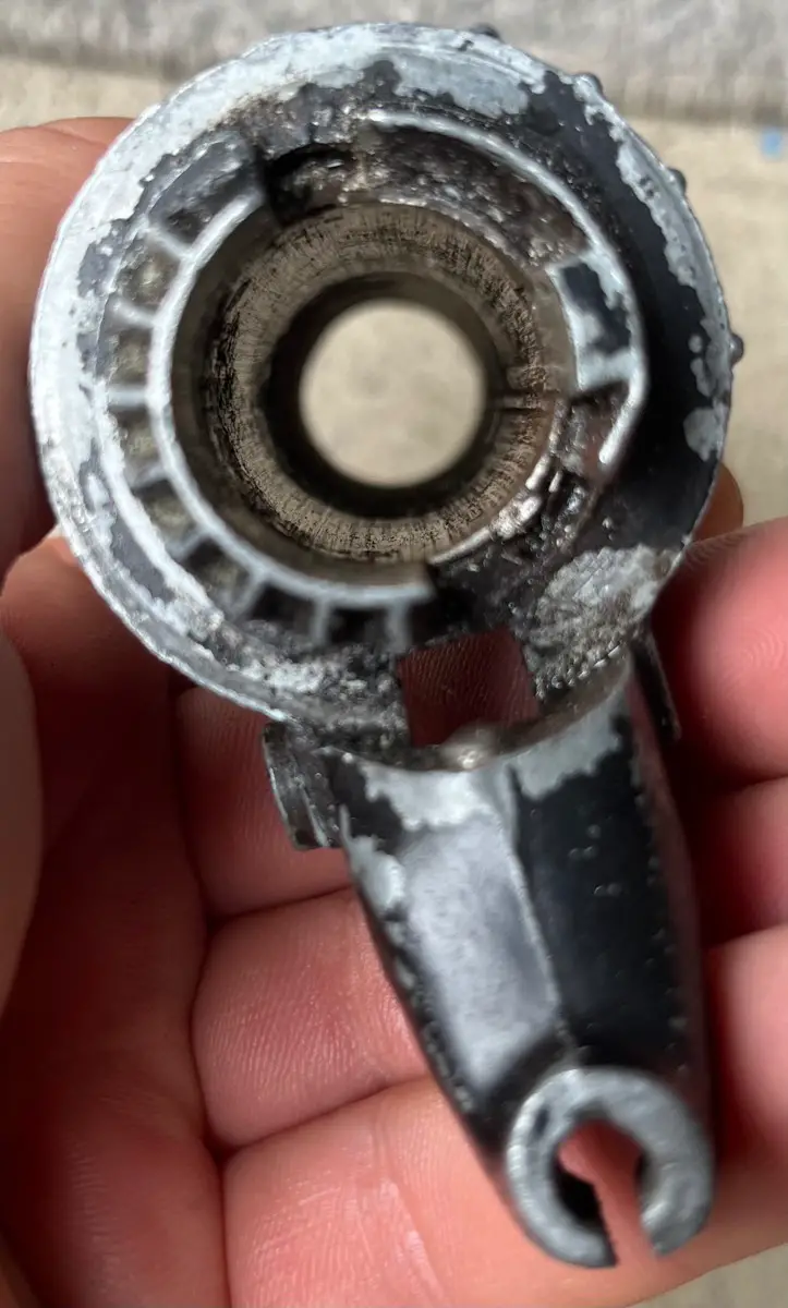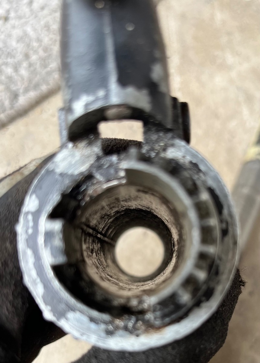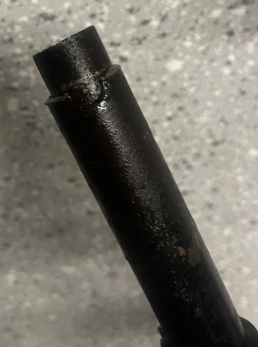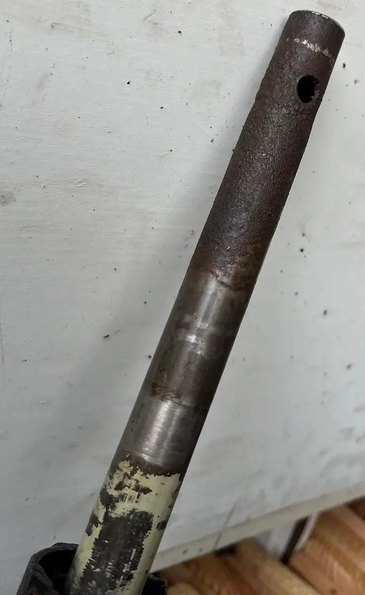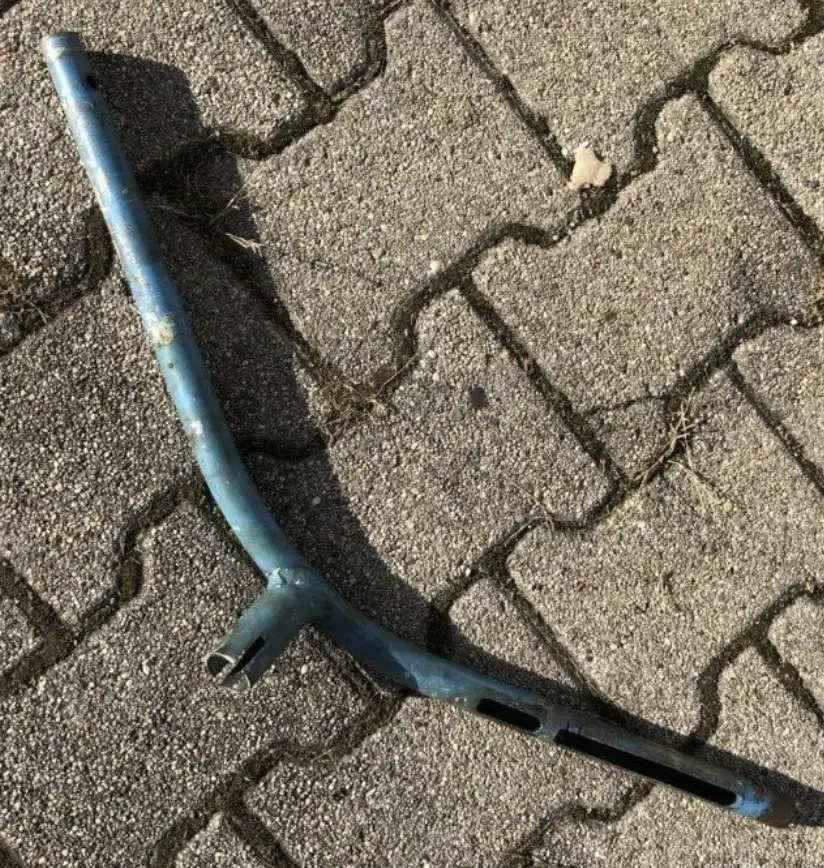 Im Lenkerrohr (vorne sehr gerostet) ist auf der Seite zum Ende hin nur das Loch zum durchführen.