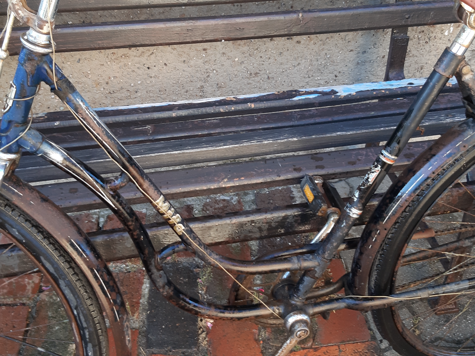 Letztens erreichte mich ein altes 28er Mifa Damenfahrrad von 1965. Ich wollte das gerne restaurieren. Da der Originallack leider ziemlich ausgeblichen ist und Matt ist, wollte ich diesen gerne wieder polieren, dass er glänzt, trotz das das Fahrrad viel Rost hat. Als ich das Fahrrad mit Wasser abgewaschen hatte, glänzte es schön, auch der Rost (siehe Bild). Nun ist meine Frage, wie ich das Fahrrad am besten mit einfachen Mitteln polieren kann und das vielleicht der Rost auch „mit Glänzt“, wie im beigefügten Bild am Hinteren Schutzblech. (Eine Poliermaschine habe ich nicht und will ich mir auch nicht extra für den Spaß kaufen.) Meine andere Frage wäre, wie ich den ganzen Dreck am besten abbekomme (warmes Wasser mit Fitt war nicht so effektiv)?