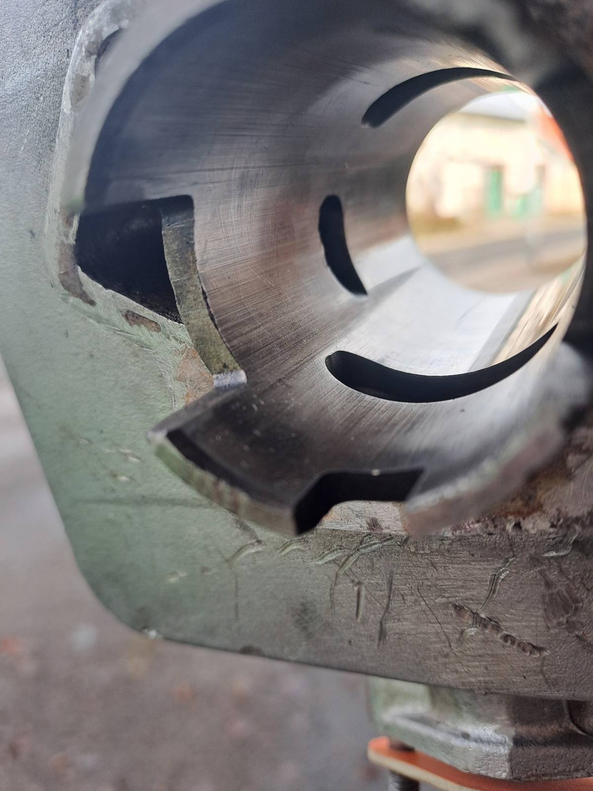 Also meiner Meinung nach ist das ein Fall zum regenerieren. So wie der Zylinder aussieht ist der Motor viel gelaufen und ausgebrochen ist er unten ja auch....Eventuell vom Motorenbauer noch zu retten wenn mehr als ein Schleifmaß aufgebohrt wird