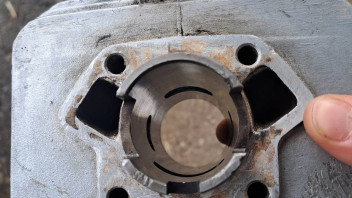 Als ich dann Probe fahren wollt gab es ein rasseln und ein unregelmäßiges klacken. Woraufhin ich den Zylinder nochmal herunter gebaut habe und den Kolben dabei vom Pleuel lösen musste da der Zylinder sonst auf höhe der Kolbenringe geklemmt hat. Der Kolben hat sich dann mit einer kleinen Dreh Bewegung vom Zylinder gelöst und der untere Kolben ring war in mehrere stücke gebrochen und der obere war auch in zwei geteilt.
