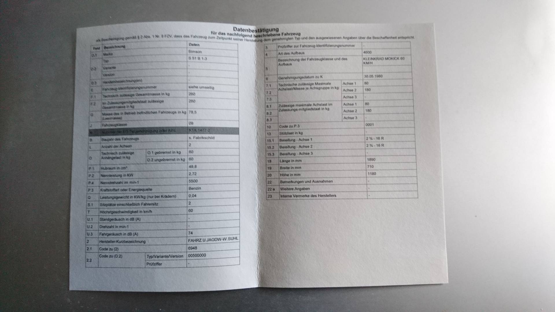 schöne Mopeden und auch schön das es bei SR2 nicht so lange dauert - liegt vielleicht auch daran, das die eh nur eine 45 km/h BE bekommen oder sollte ich mir irren und du hast eine mit 60 km/h für den SR2 bekommen was ich nicht glauben kann