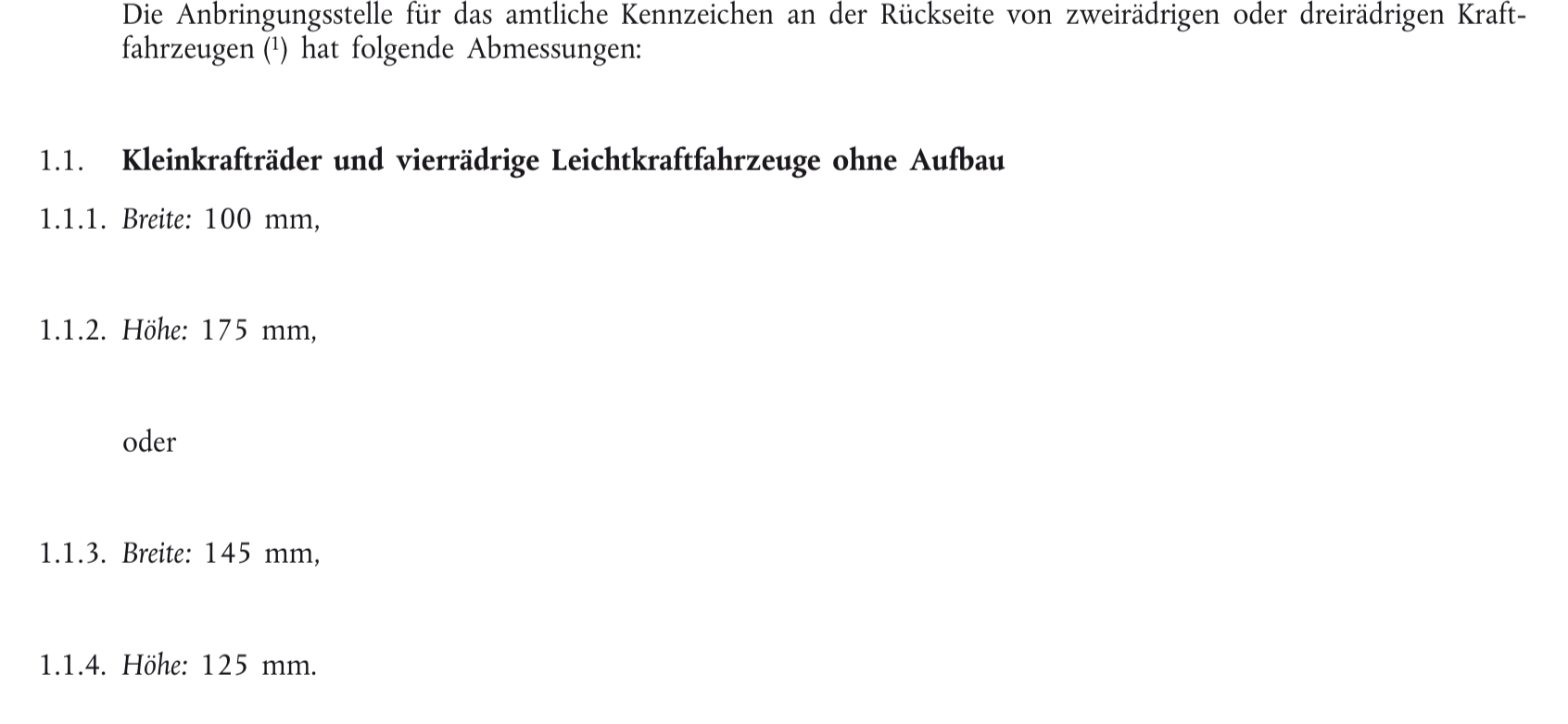 Außerdem, wie soll ich einen Kennzeichenhalter mit Beleuchtung nachrüsten, wenn die Kennzeichengröße in Klärung ist. Ich fahr heute mal beim TÜV vorbei und frage nach.
