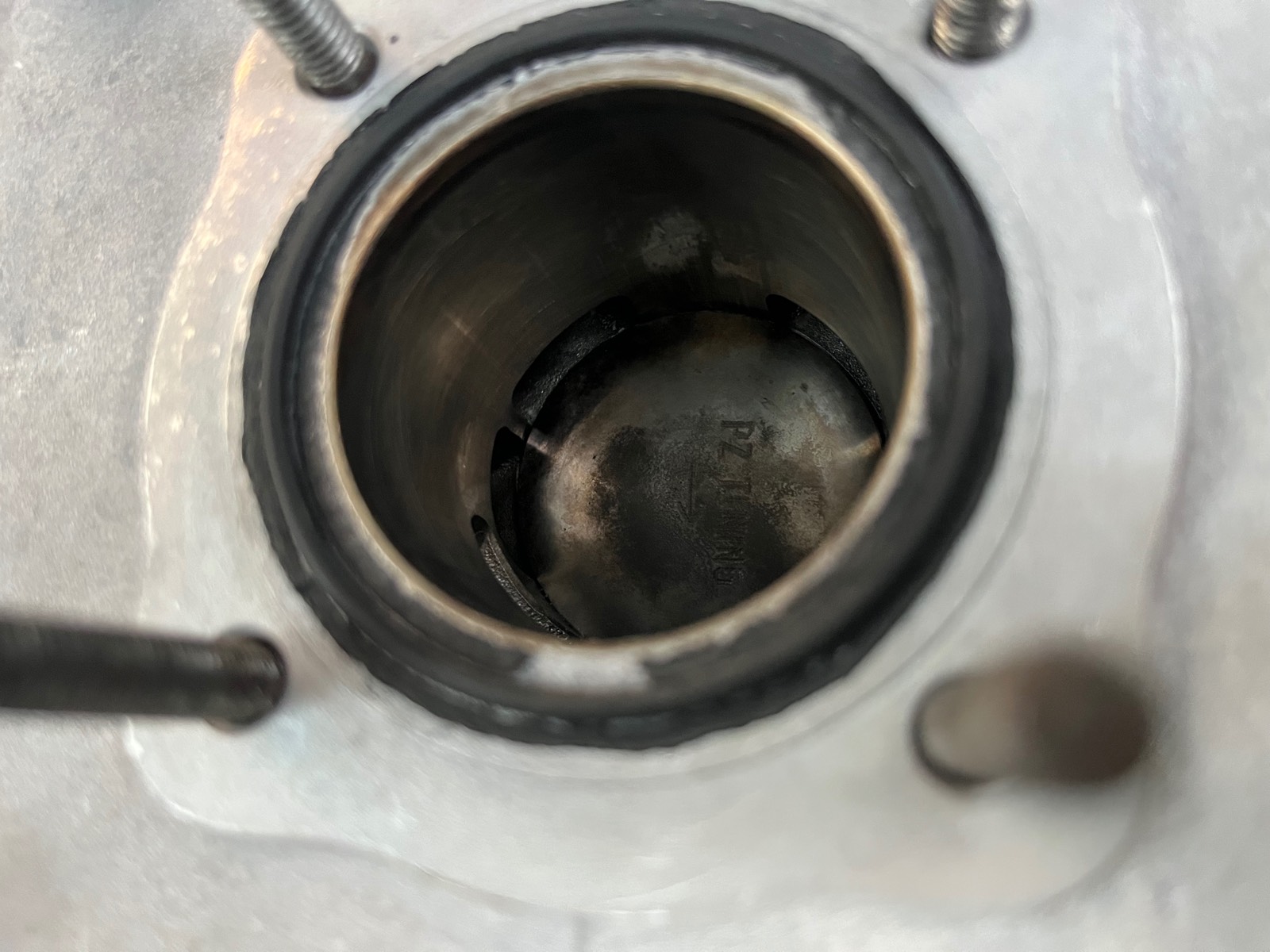 Jetzt kommt das komische. Der fresser ist auf der Einlass Seite und das ganze sieht eher aus als hätte sich die Beschichtung vom Zylinder gelöst und sich der Kolben dann gefressen. Von den 14,5 ps die PZ verspricht war auch nichts zu spüren.