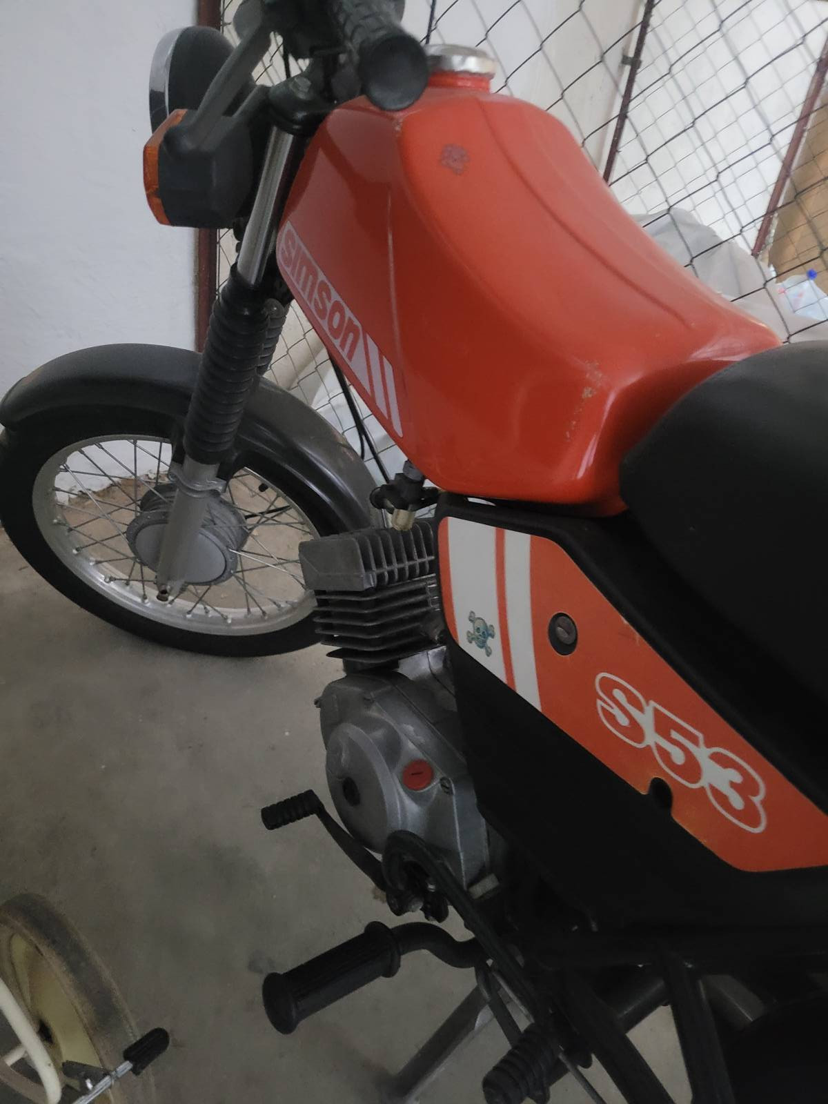 Die Zündapp stellte sich dann als S53 vor (was für mich schon ein Unterschied ist, da ich noch nie eine besaß und ehrlich gesagt auch keinen Plan davon habe). Ich habe nur den Tank, das vordere Rad und die Seitenverkleidung gesehen. Kurz die Preise im Netz angesehen und ohne Papiere gekauft (nein, war kein super Schnapper). Die S53 hat Speichenräder (denke keine Alu) und Bremstrommel). Der Grund des Kaufes war der offensichtlich originale und sehr schöne Zustand bei dem bisschen was ich gesehen habe.