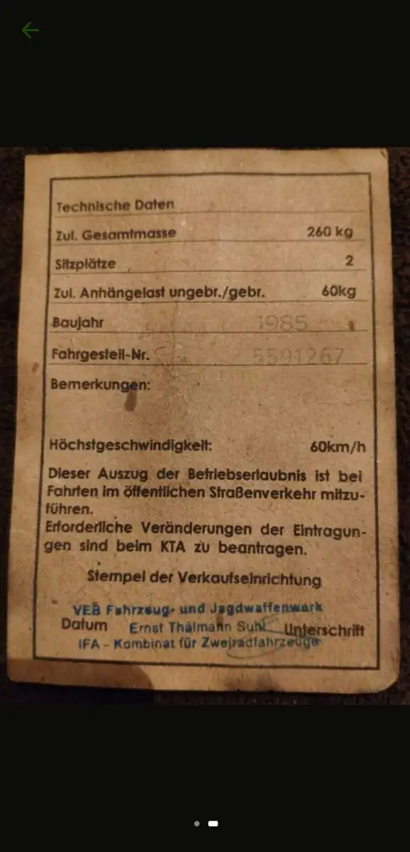 Unterlagen das das Moped auch wirklich in der DDR auf der Straße war ?