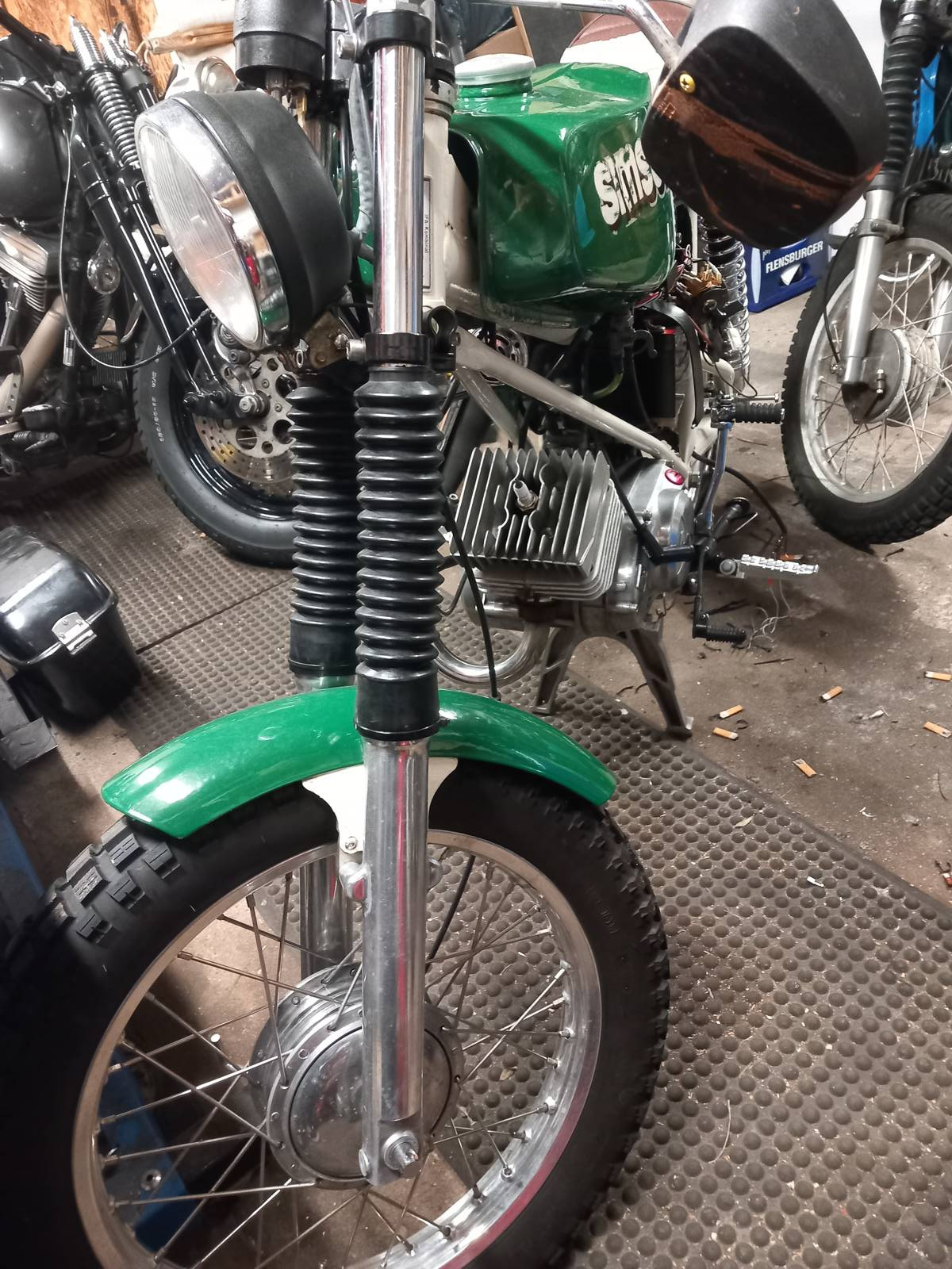 Es gibt bei der Yamaha SR125 eine längere und eine kürzere Variante , wie bei Simson auch . Ich habe bei mir die kürzere Variante montiert , die ist im vergleich zur Simsongabel von den Maßen her Identisch . Dad bei einer Originalen Yamaha Gabel bei Verwendung mit Simsongabelbrücken kein Gutachten für Simson dabei ist brauche ich hier ja wohl nicht erklären das ist ja wohl klar. Und Julek wollte in die Tauchrohre von ZT die längeren Standrohre vom Simson Roller einbauen . Damit gilt das